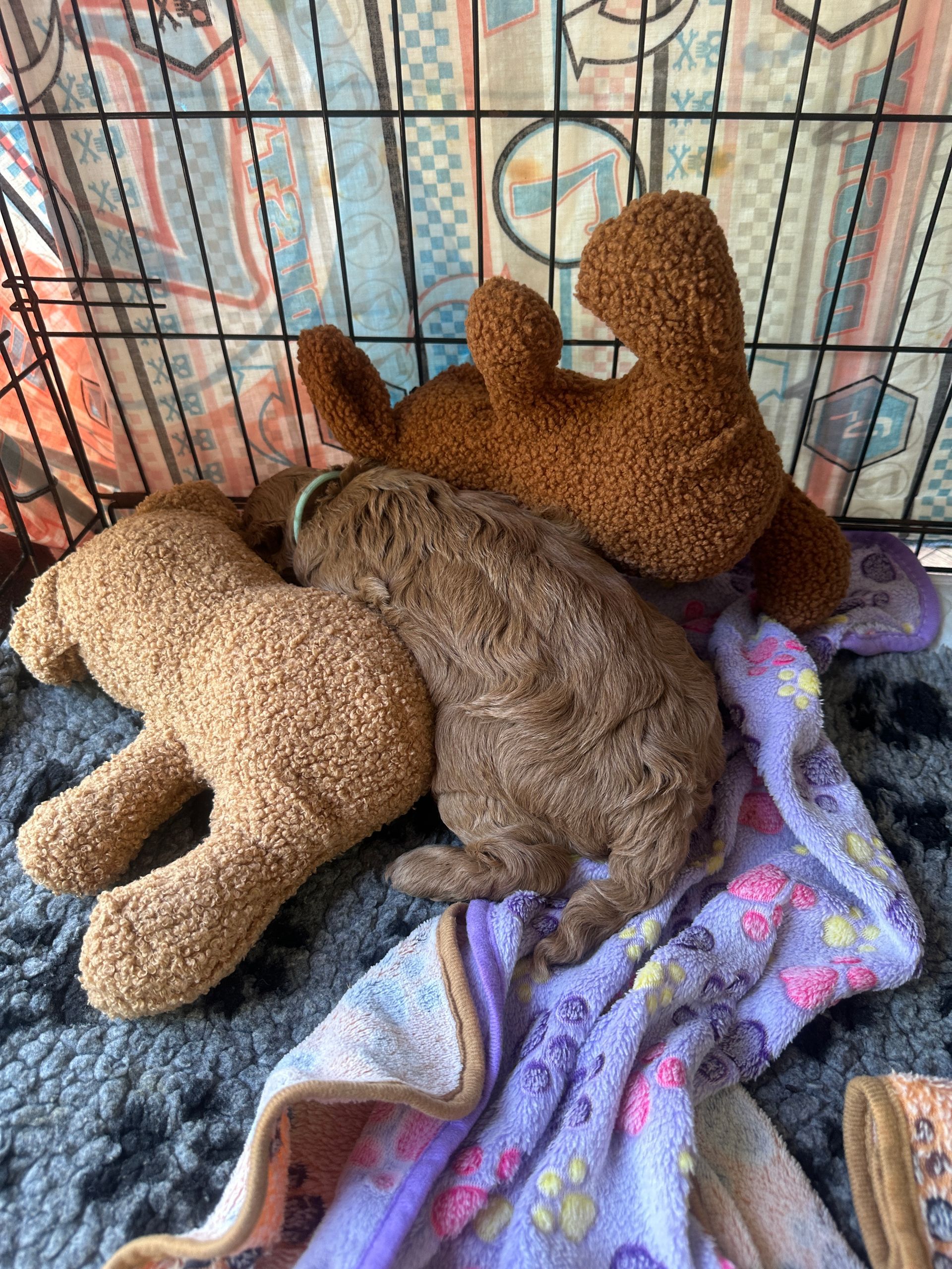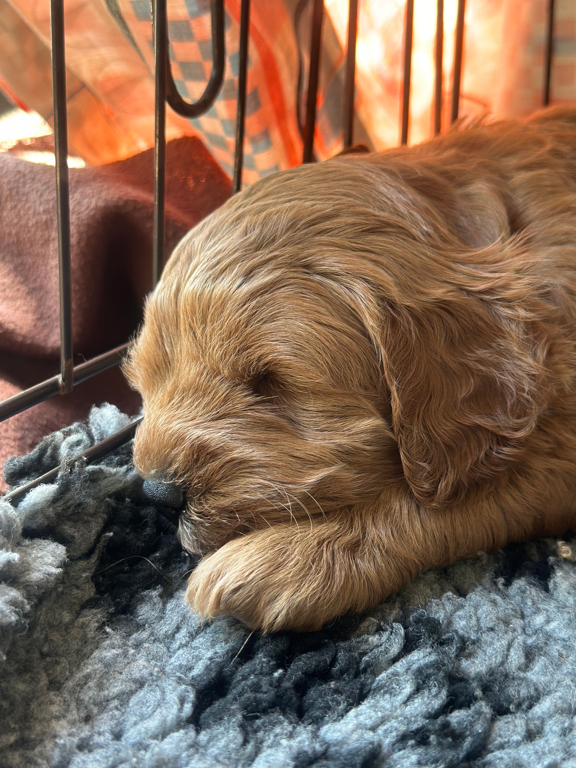 Mummy and babies are doing very well. Pups will be due for new homes around the 12th/13th December. We have caramel and creme caramel. We anticipate pups to be around 12 kg as adults dogs. All pups from this litter have loving homes to go to.