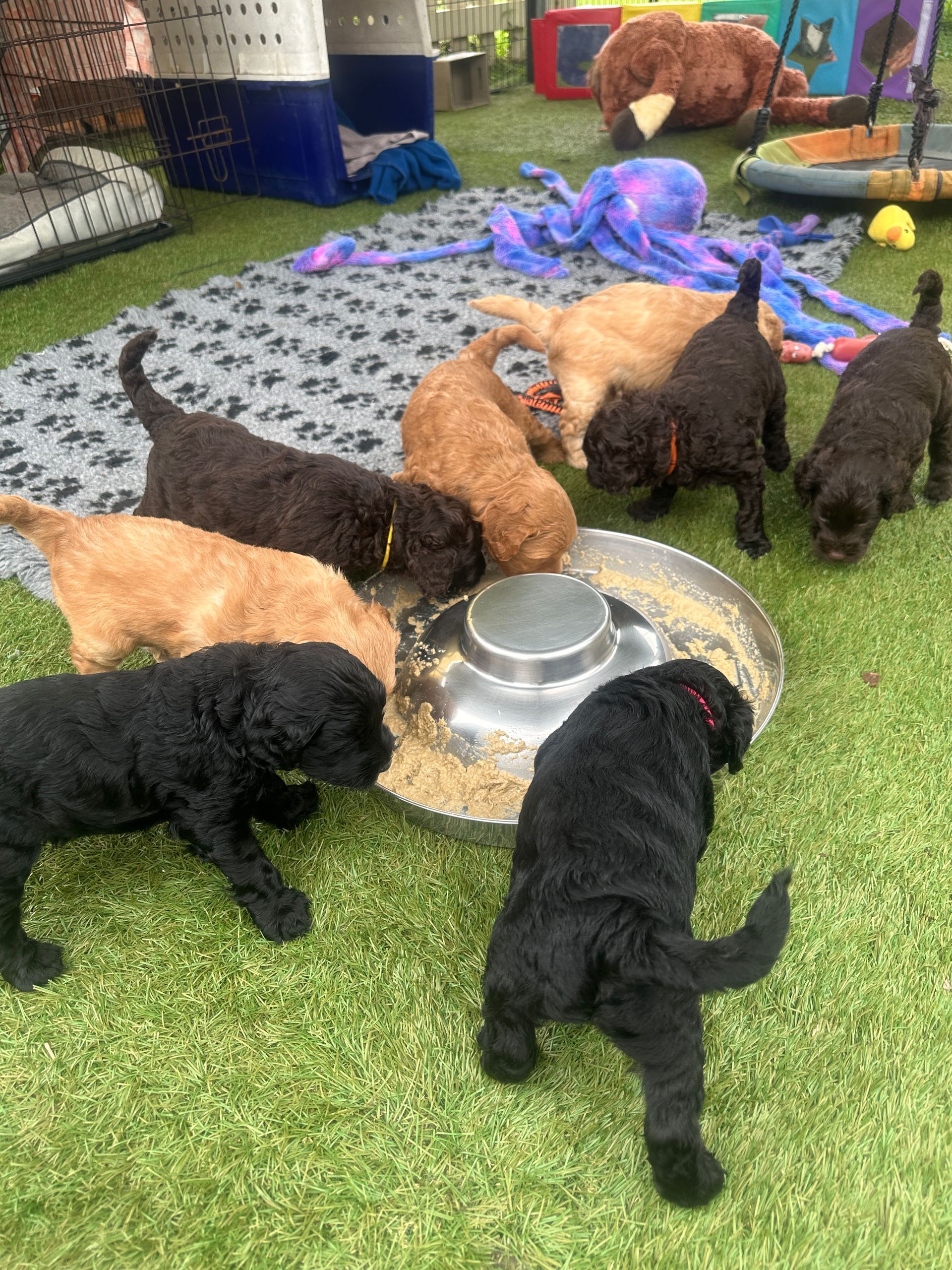 Mummy and babies are doing very well. Pups will be due for new homes around the 10th February 2025 We have 4 females and 4 males in chocolate, caramel, cream and black We anticipate pups to be around 12 kg as adults dogs. Due to a change in circumstances, we have one pup available from this litter. If you are interested, please complete an Expression of Interest or call Trish on 0409 813 053