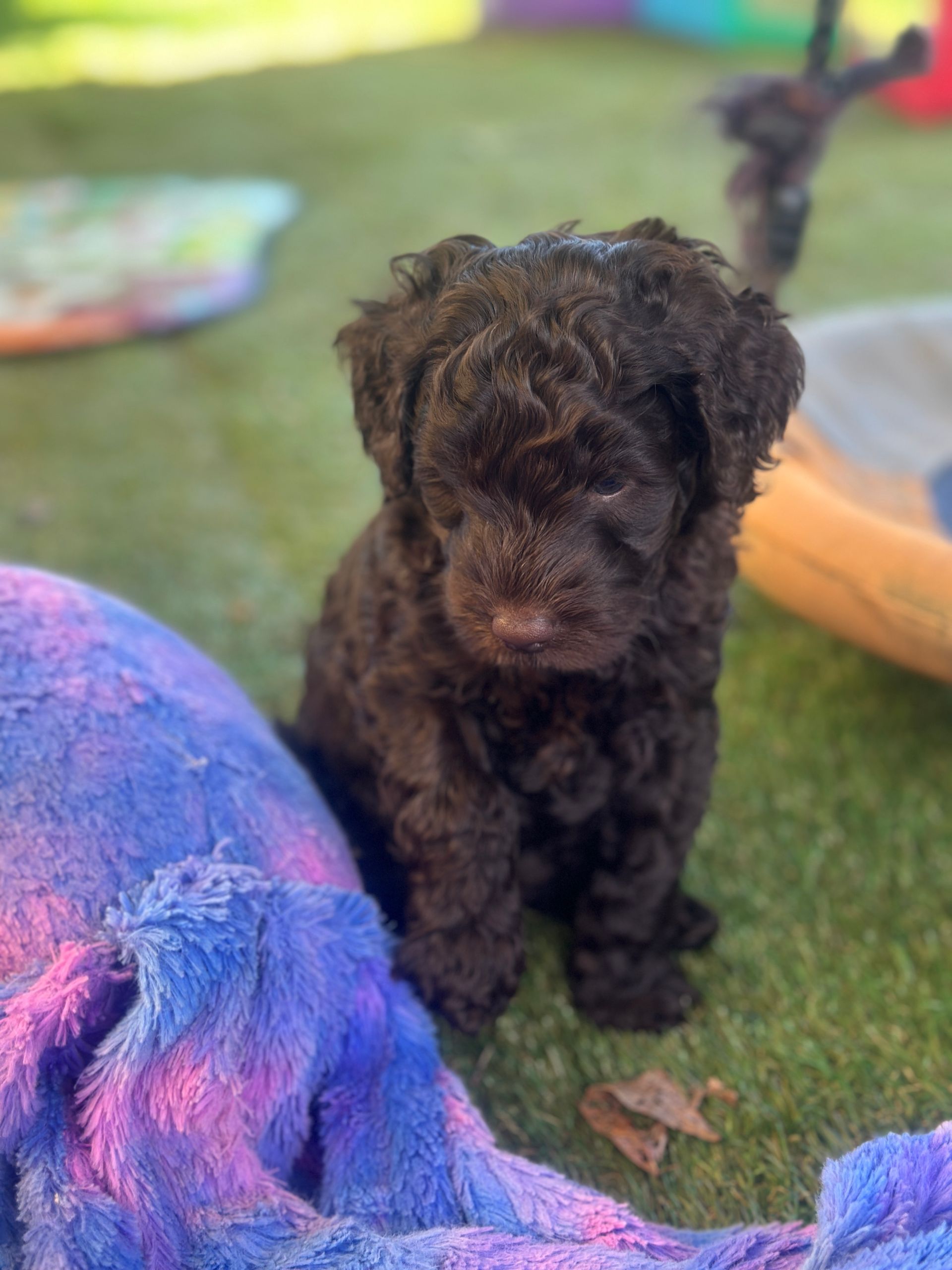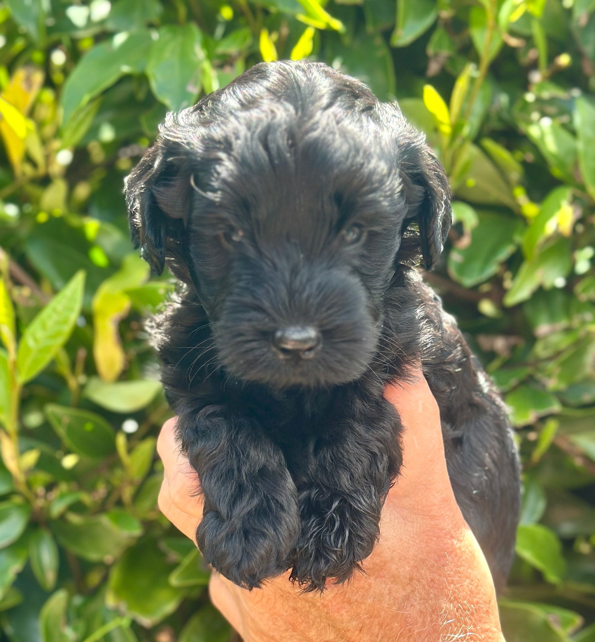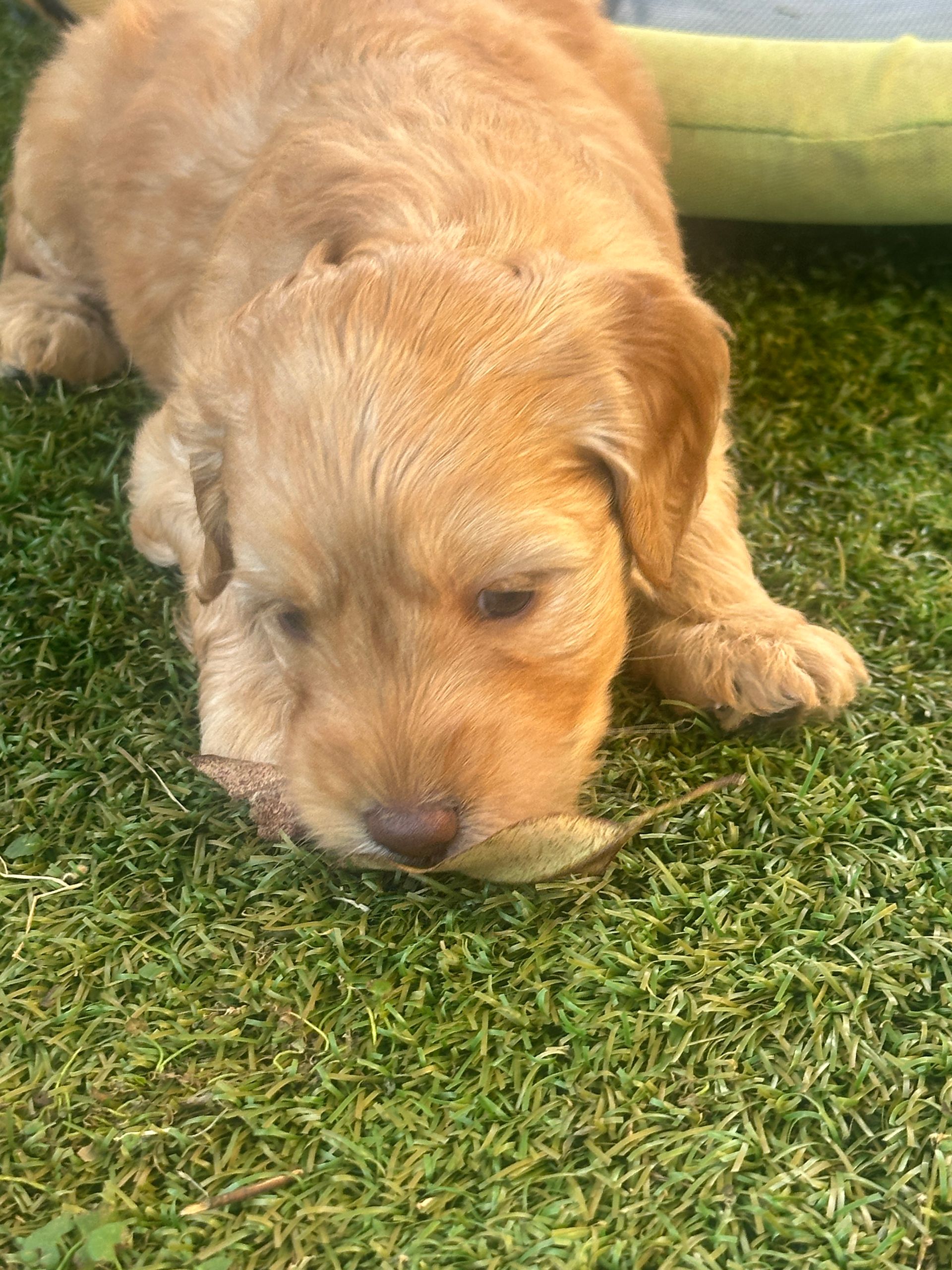 Mummy and babies are doing very well. Pups will be due for new homes around the 10th February 2025 We have 4 females and 4 males in chocolate, caramel, cream and black We anticipate pups to be around 12 kg as adults dogs. All puppies have loving homes to go to.