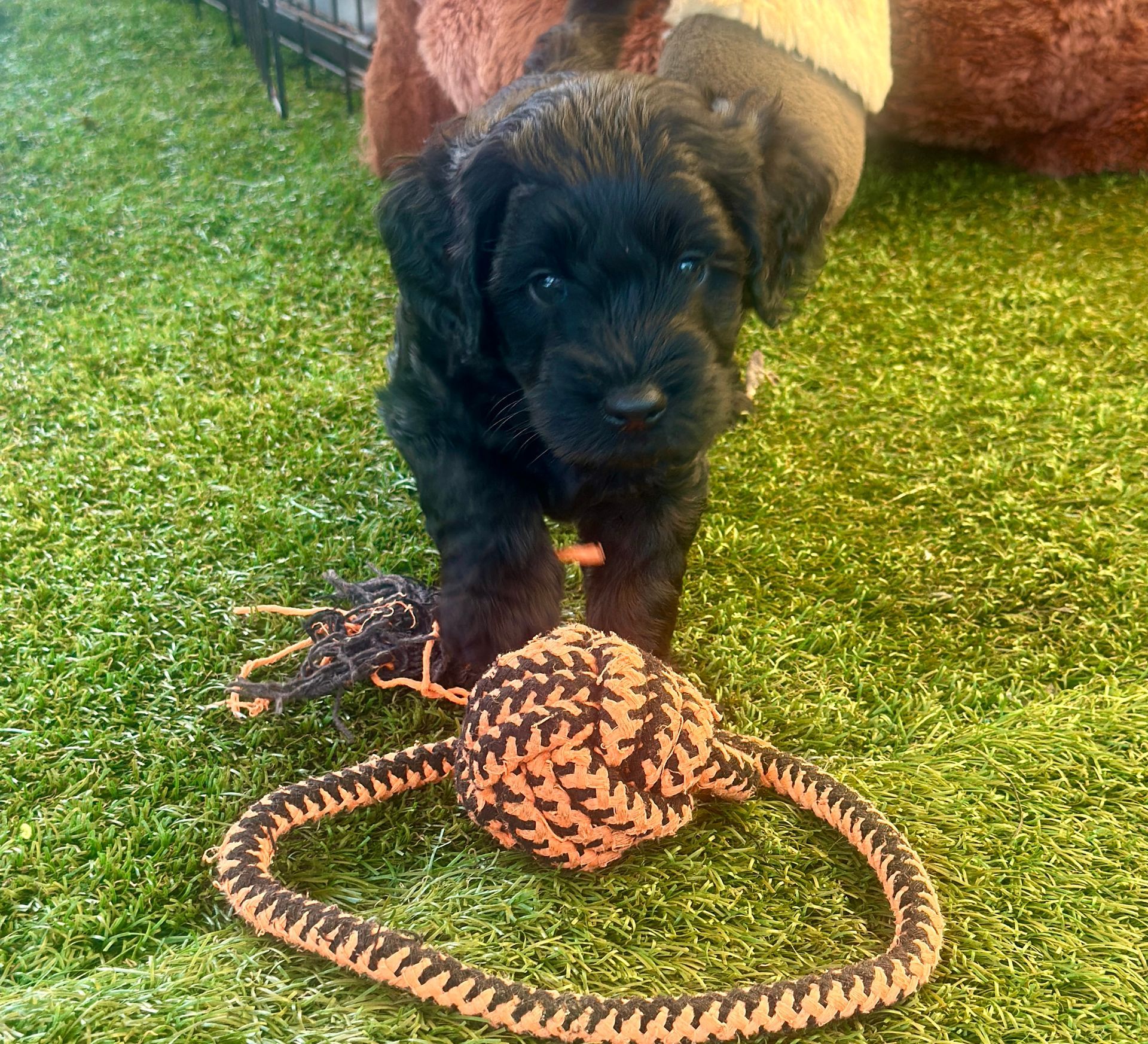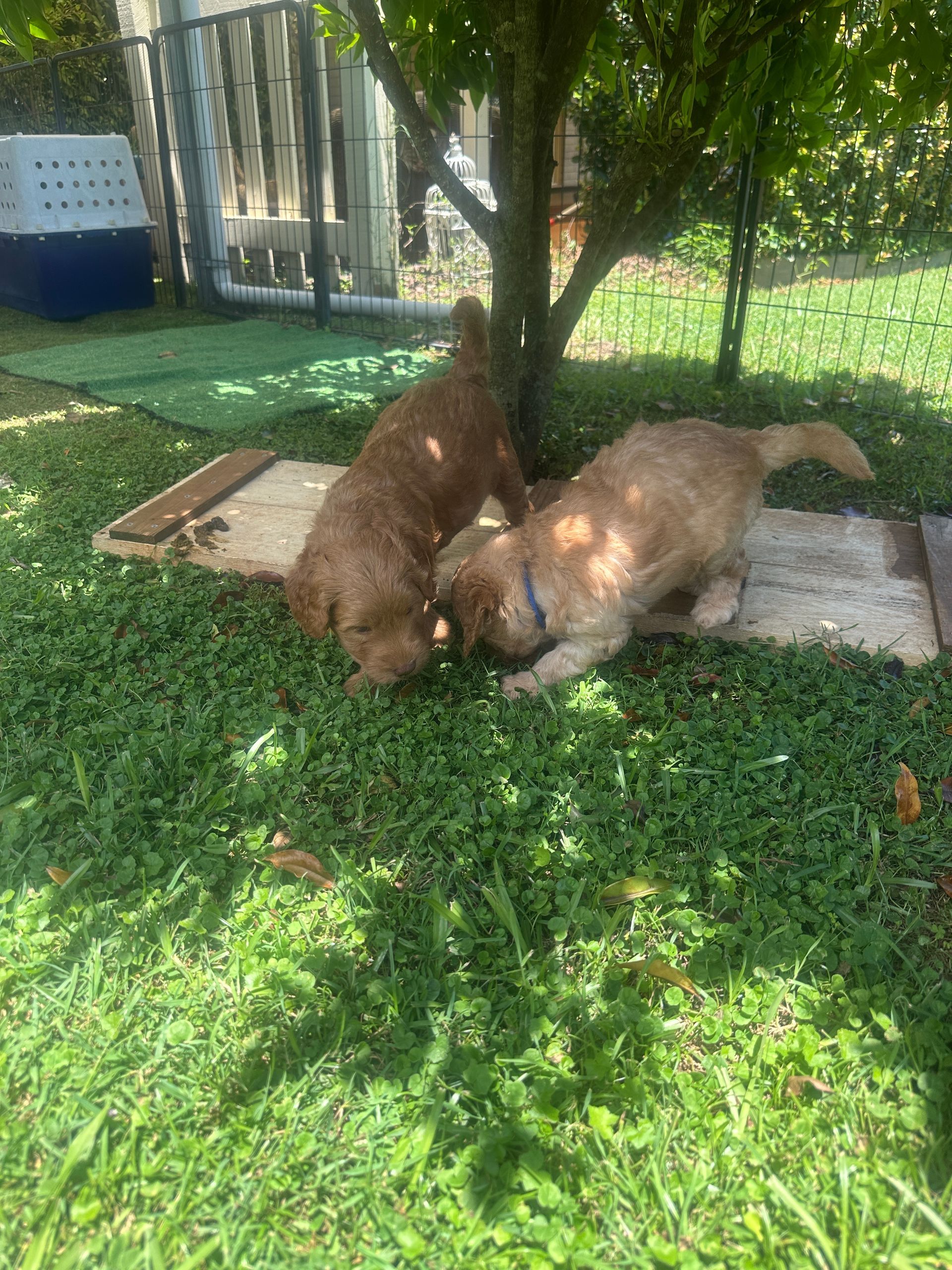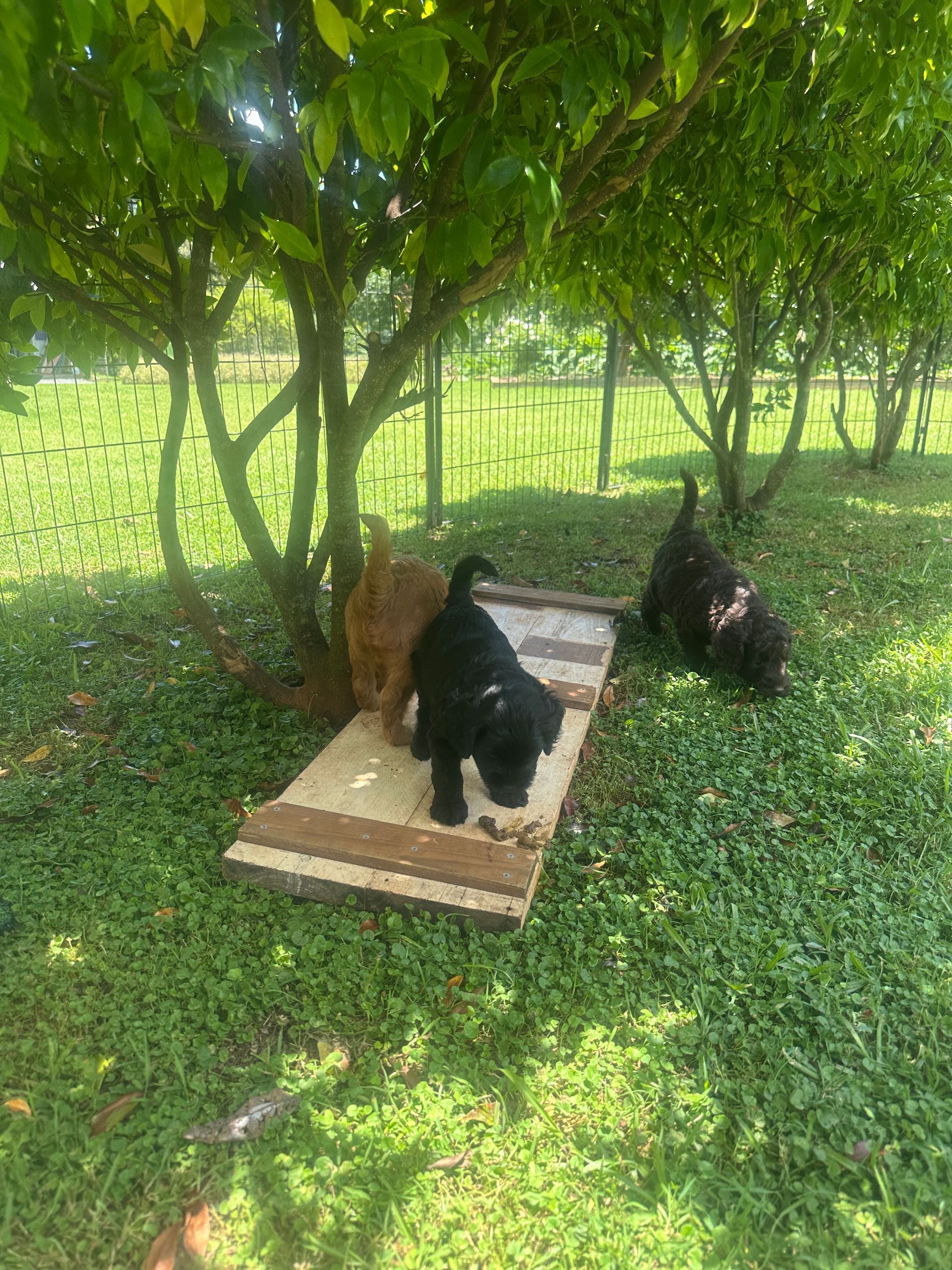 Mummy and babies are doing very well. Pups will be due for new homes around the 10th February 2025 We have 4 females and 4 males in chocolate, caramel, cream and black We anticipate pups to be around 12 kg as adults dogs. All puppies have loving homes to go to.