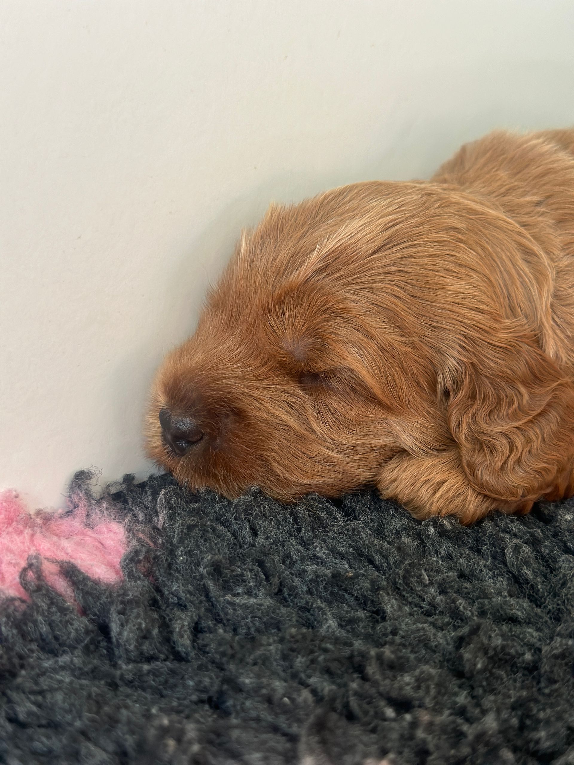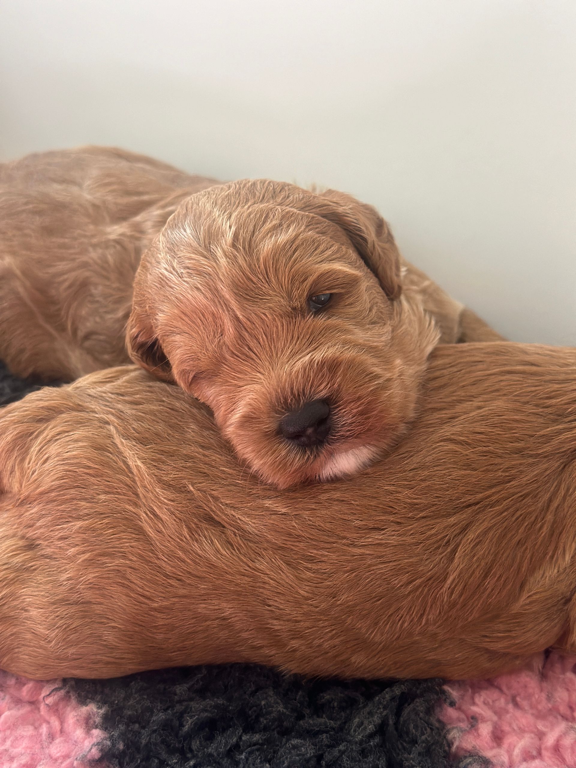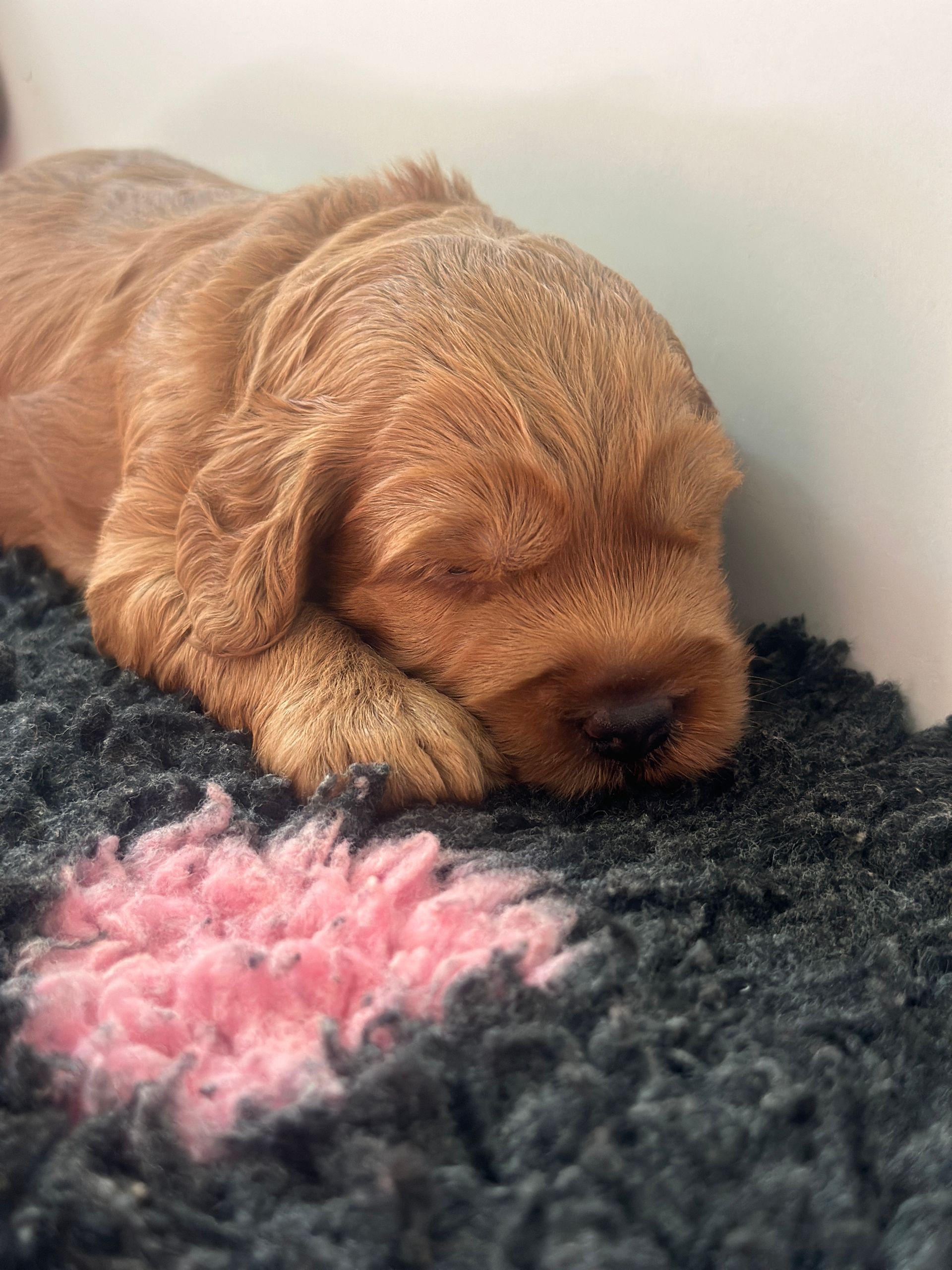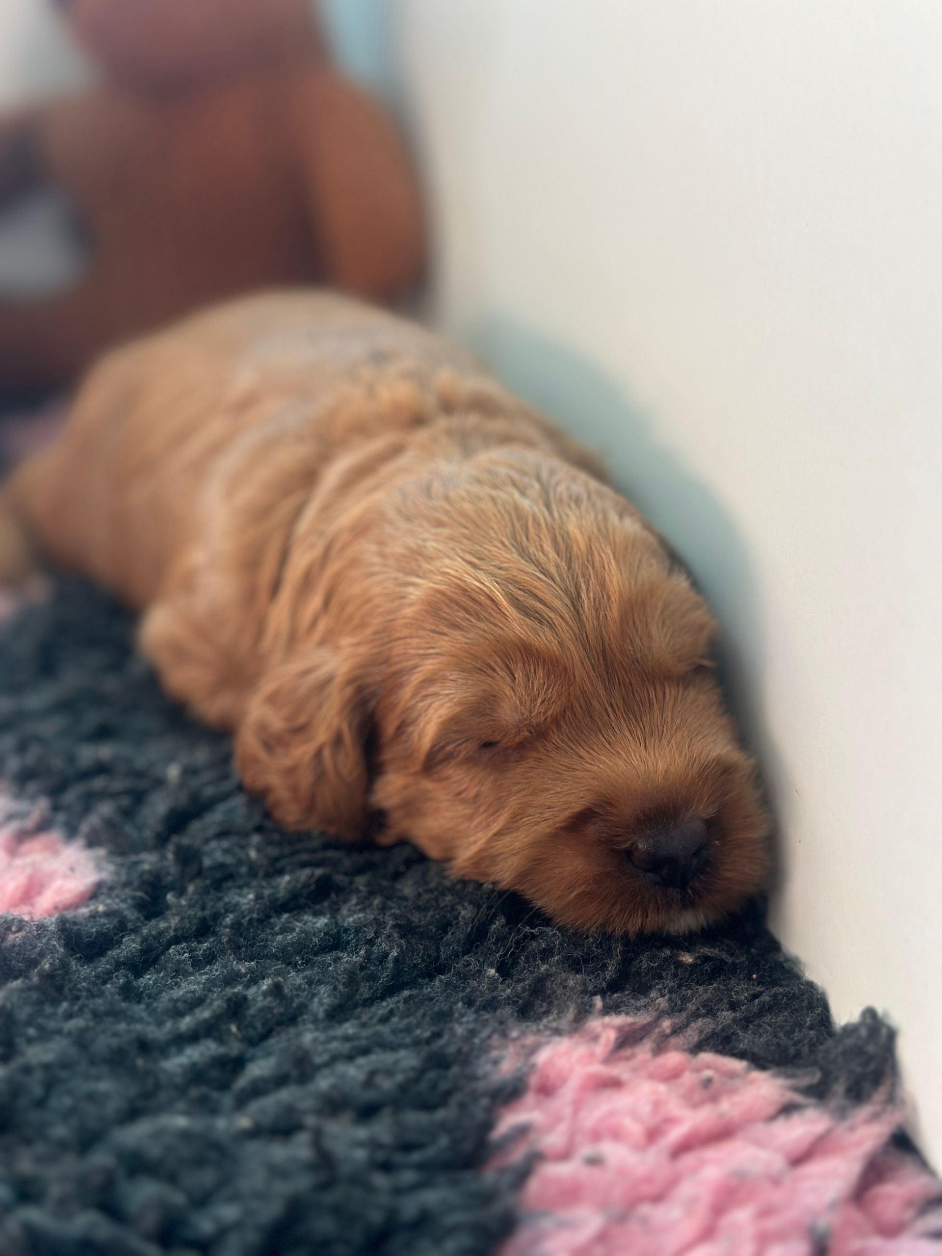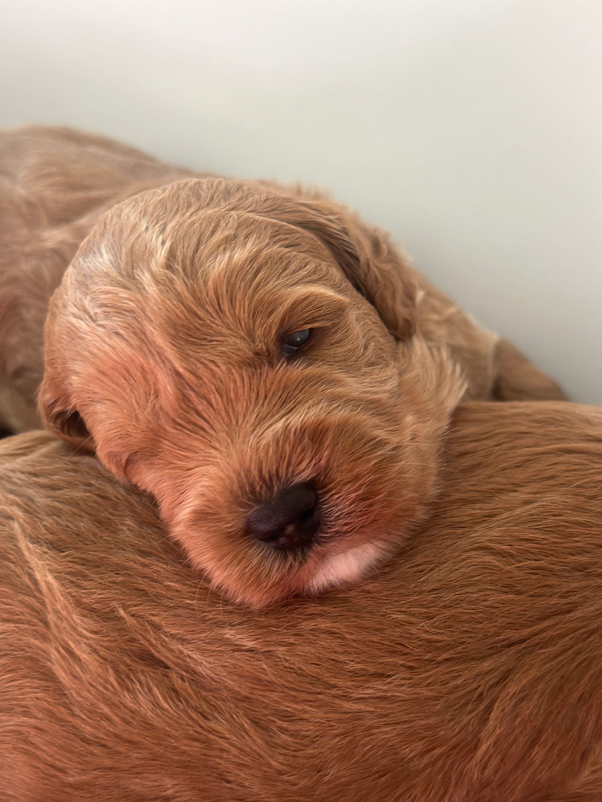 Mummy and babies are doing very well. Pups will be due for new homes around the 12th/13th December. We have caramel and creme caramel. We anticipate pups to be around 12 kg as adults dogs. All pups from this litter have loving homes to go to.