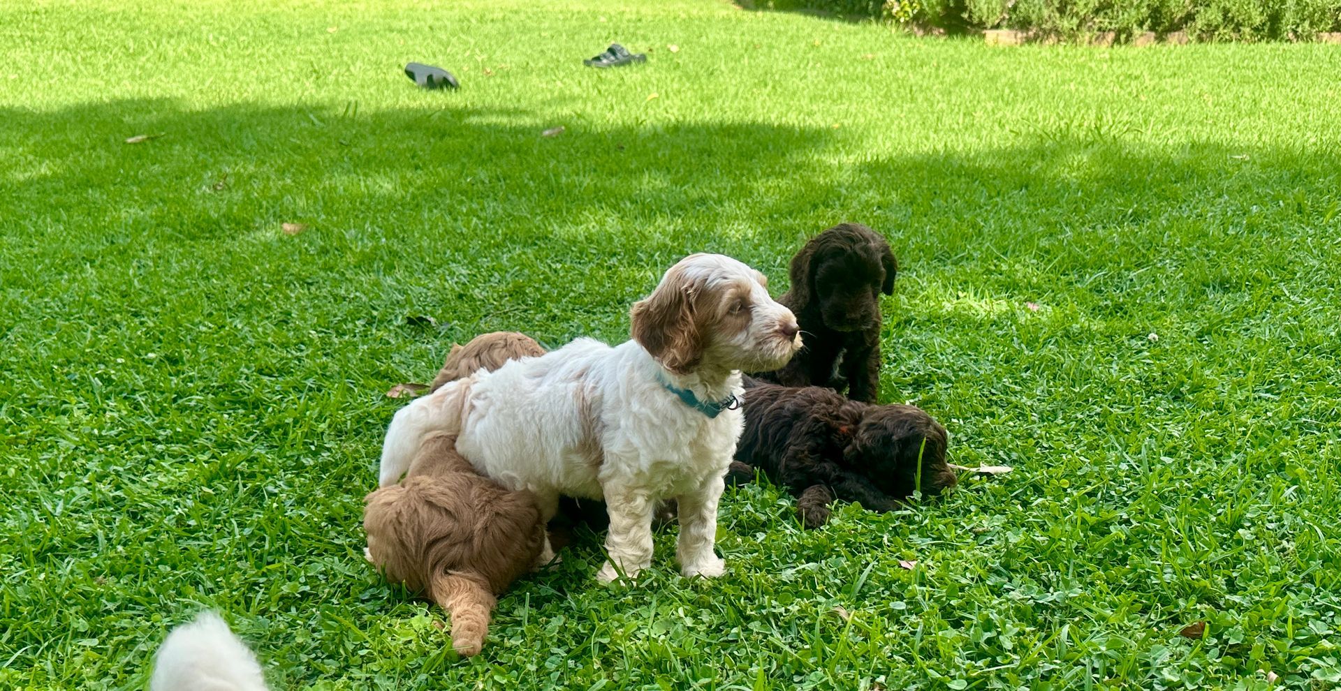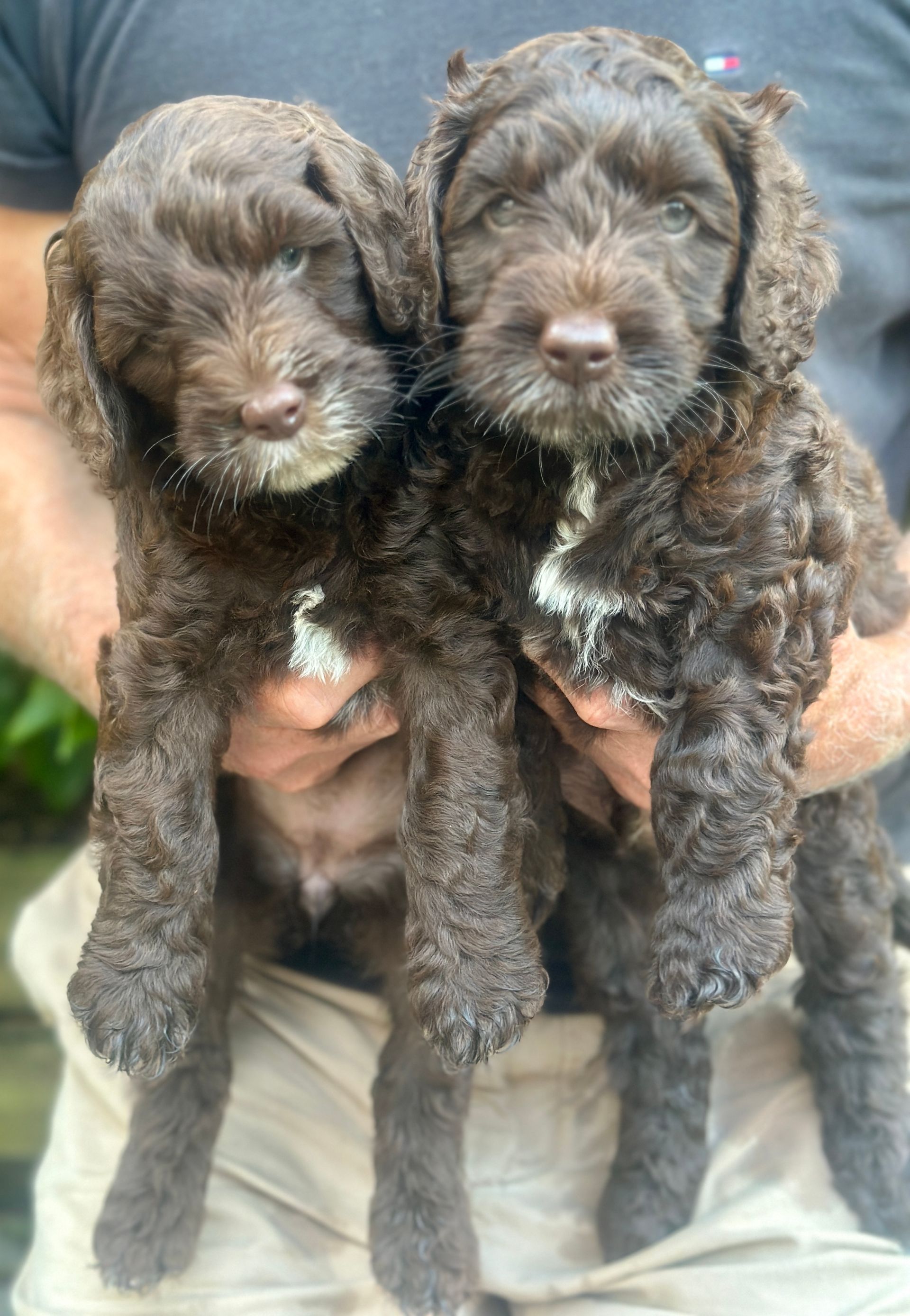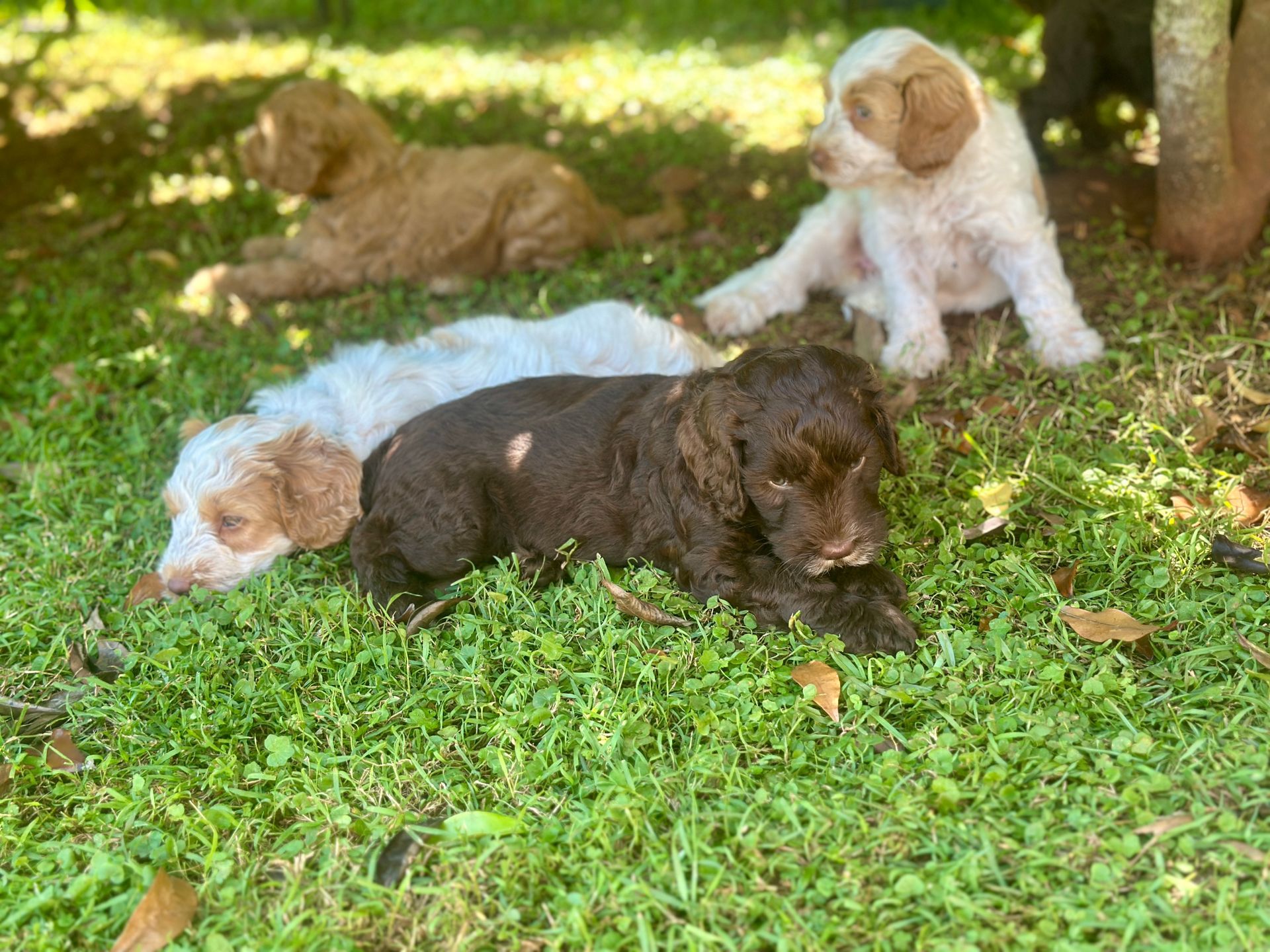 Mummy and babies are doing very well. Pups will be due for new homes around the 4th and 5th of February 2025. We have 5 females and 3 males in chocolate, caramel and caramel and white parti. We anticipate pups to be around 12 kg as adults dogs. Due to a change in circumstances. All pups have loving homes to go to.
