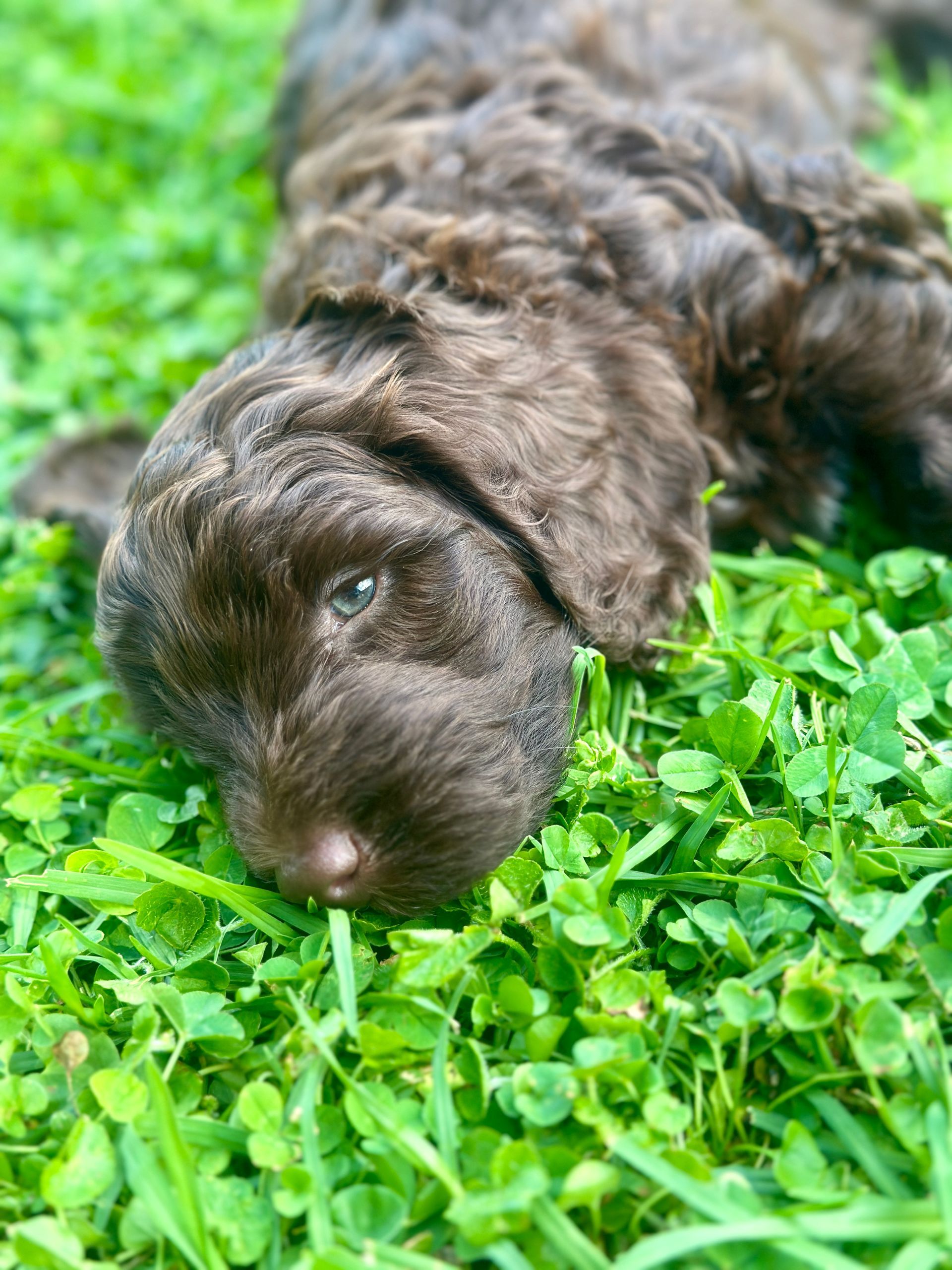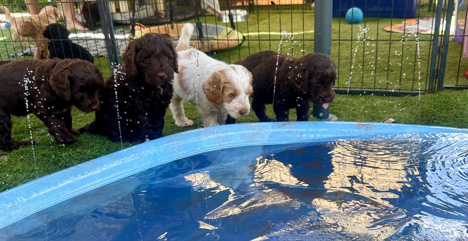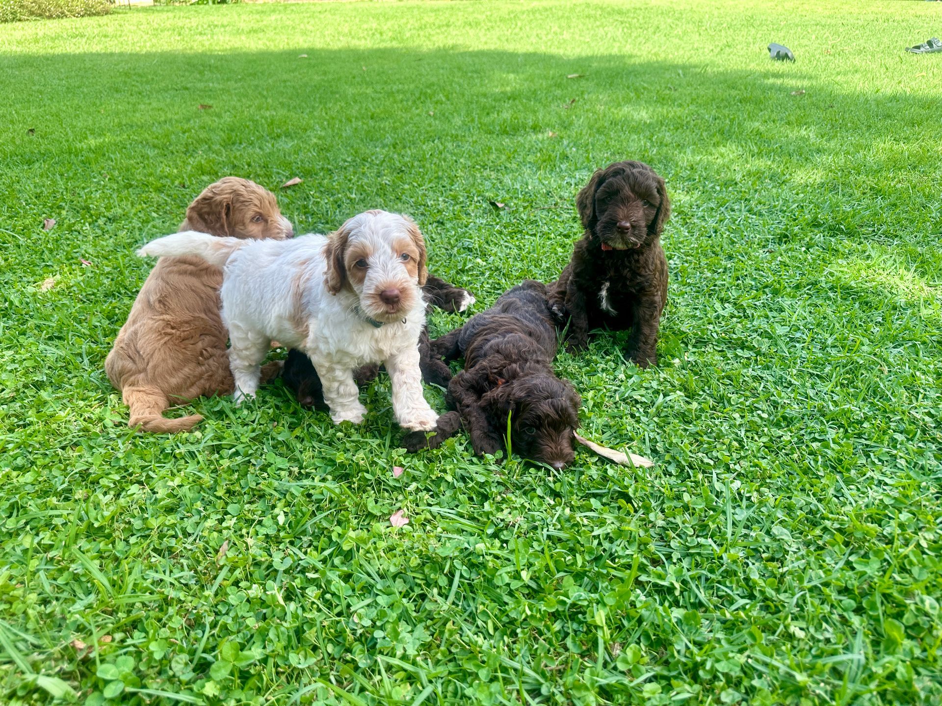Mummy and babies are doing very well. Pups will be due for new homes around the 4th and 5th of February 2025. We have 5 females and 3 males in chocolate, caramel and caramel and white parti. We anticipate pups to be around 12 kg as adults dogs. Due to a change in circumstances. All pups have loving homes to go to.