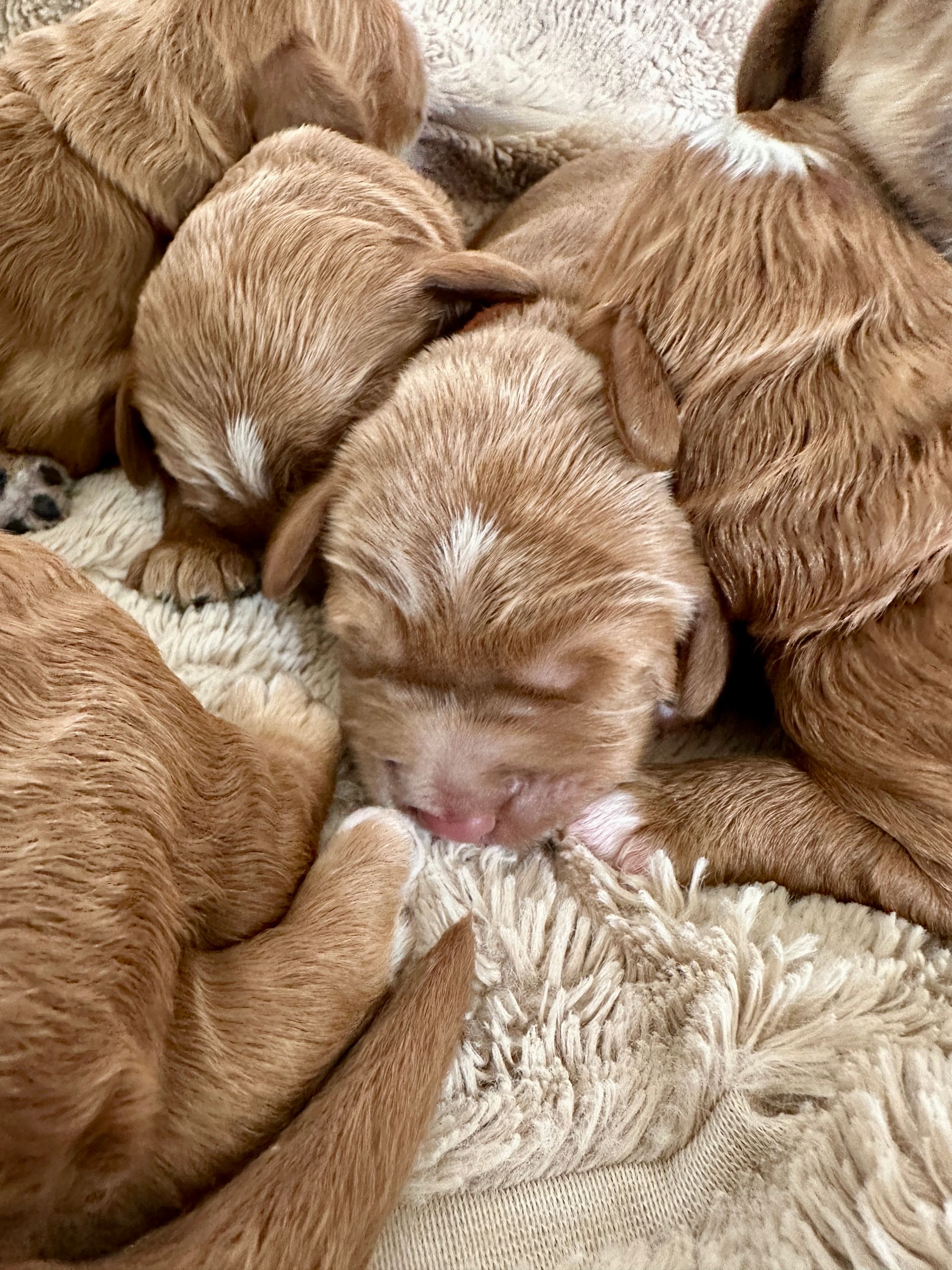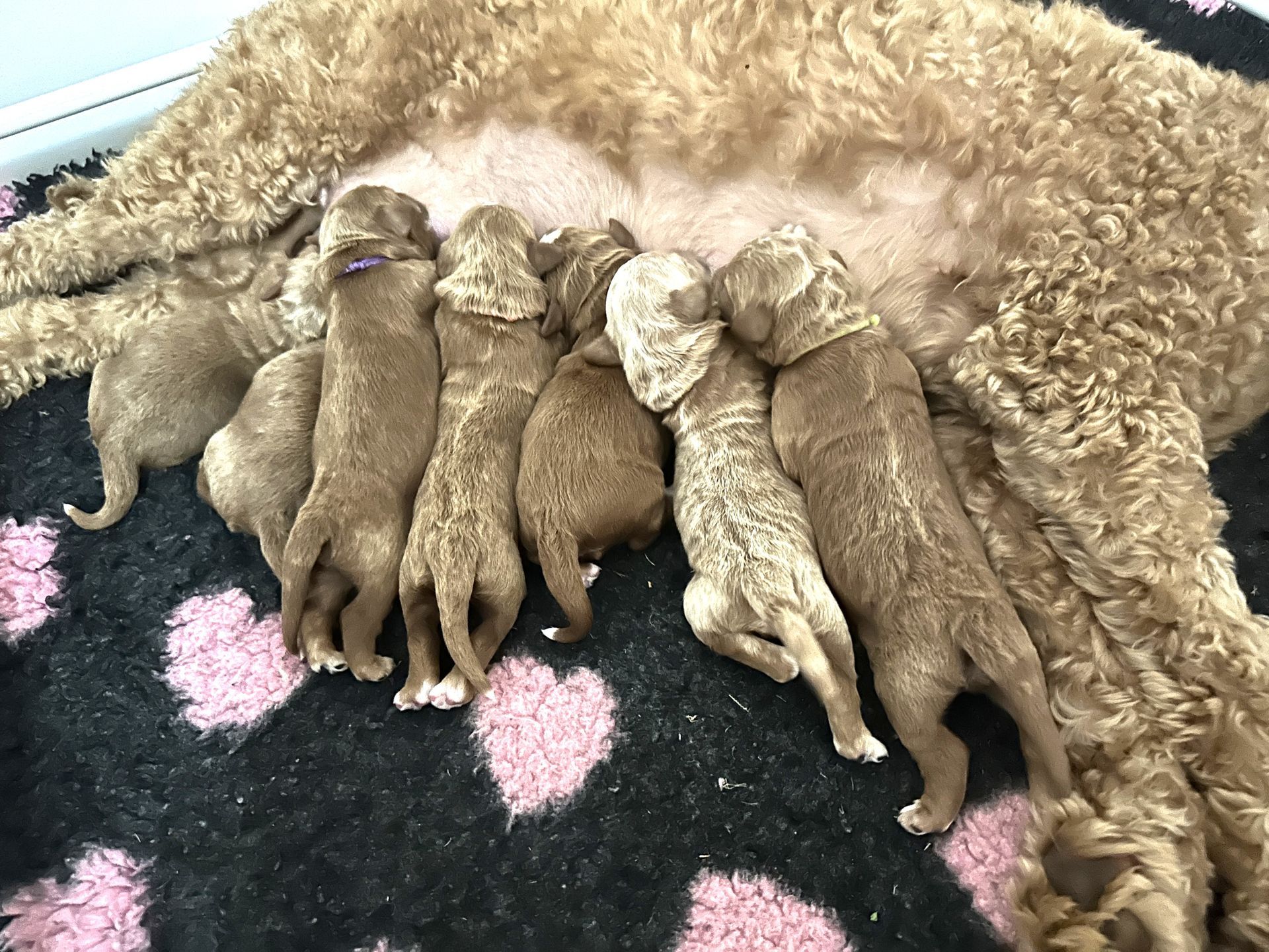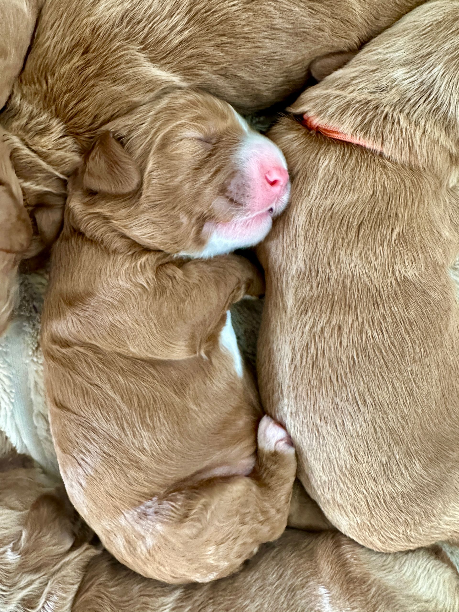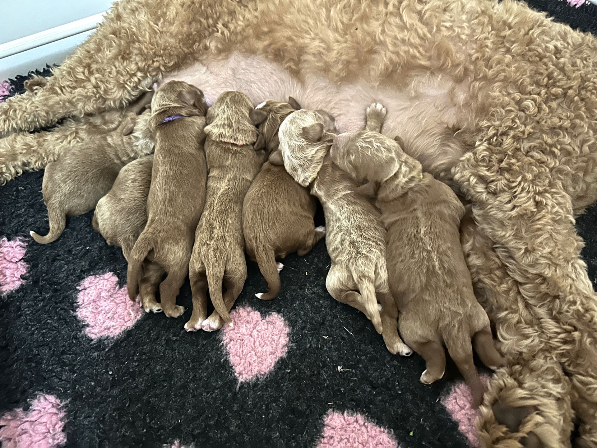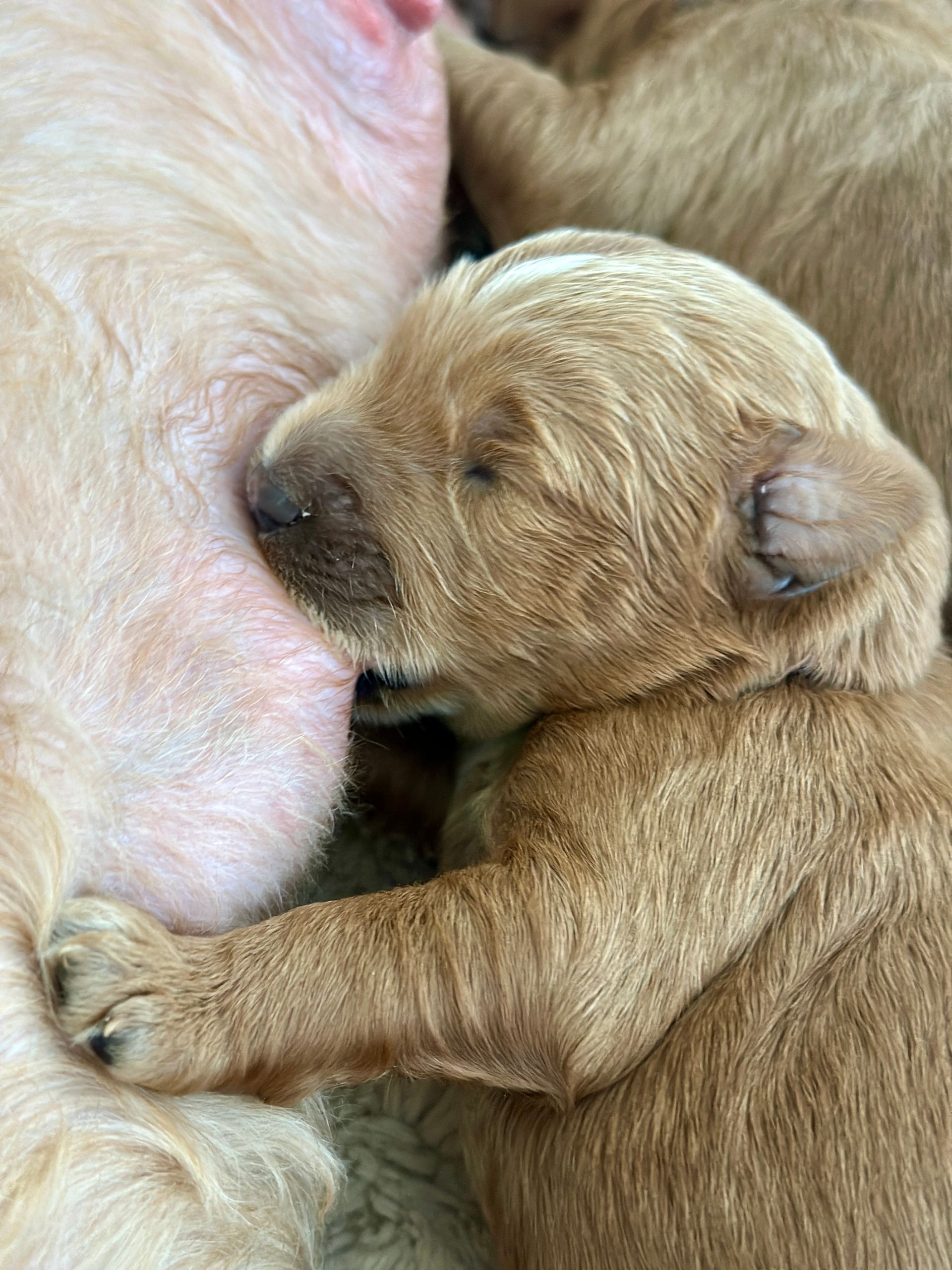 Mummy and babies are doing very well. We have five males and two females in caramel colourings We anticipate pups to be around 14 -16kg kg as adults dogs. Pups will be ready for their new homes around the 11th and 12th of October. All pups from this litter have loving homes to go to.
