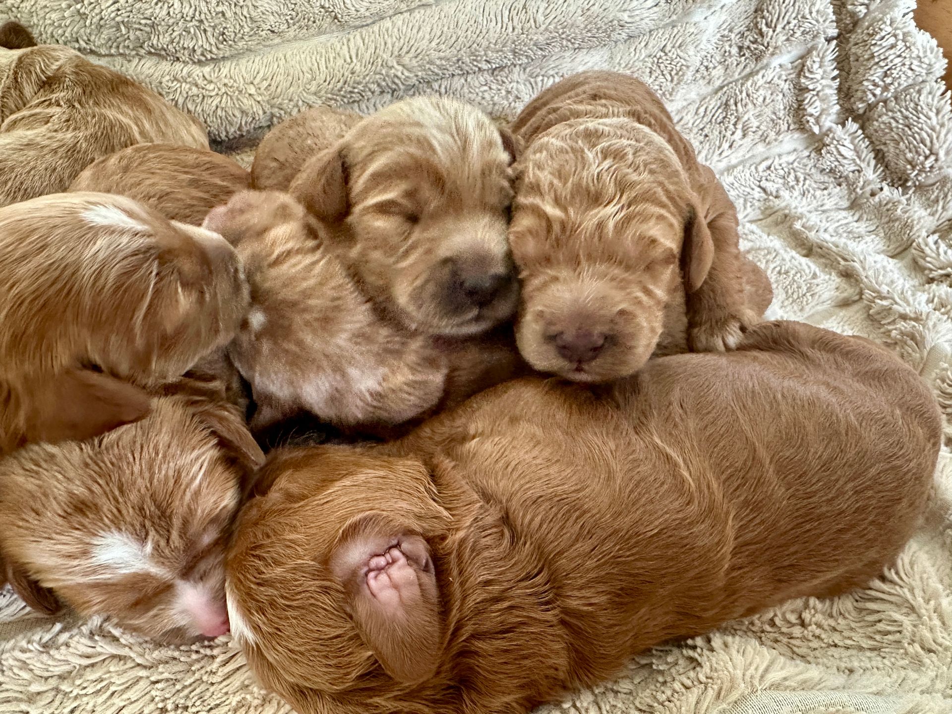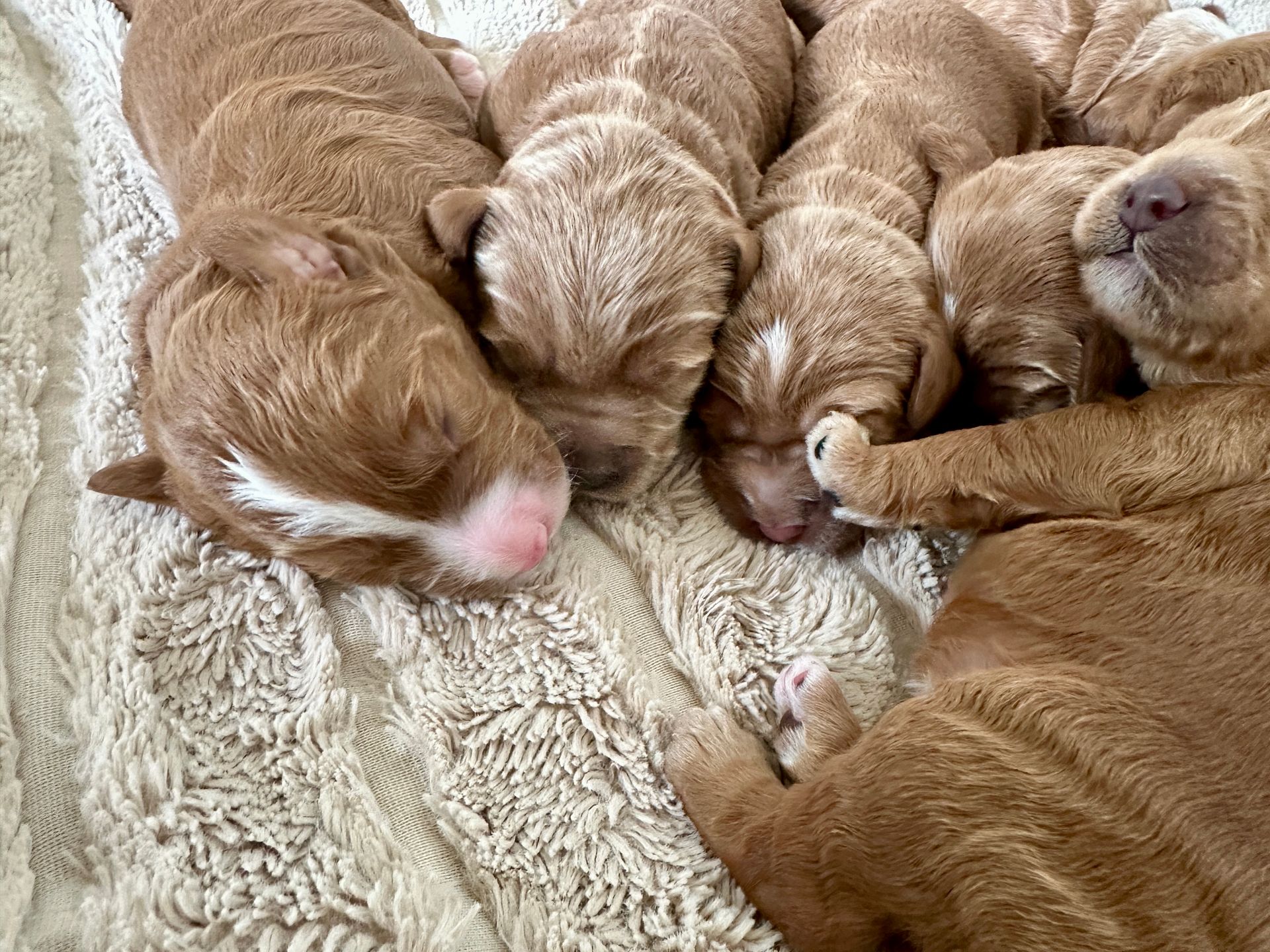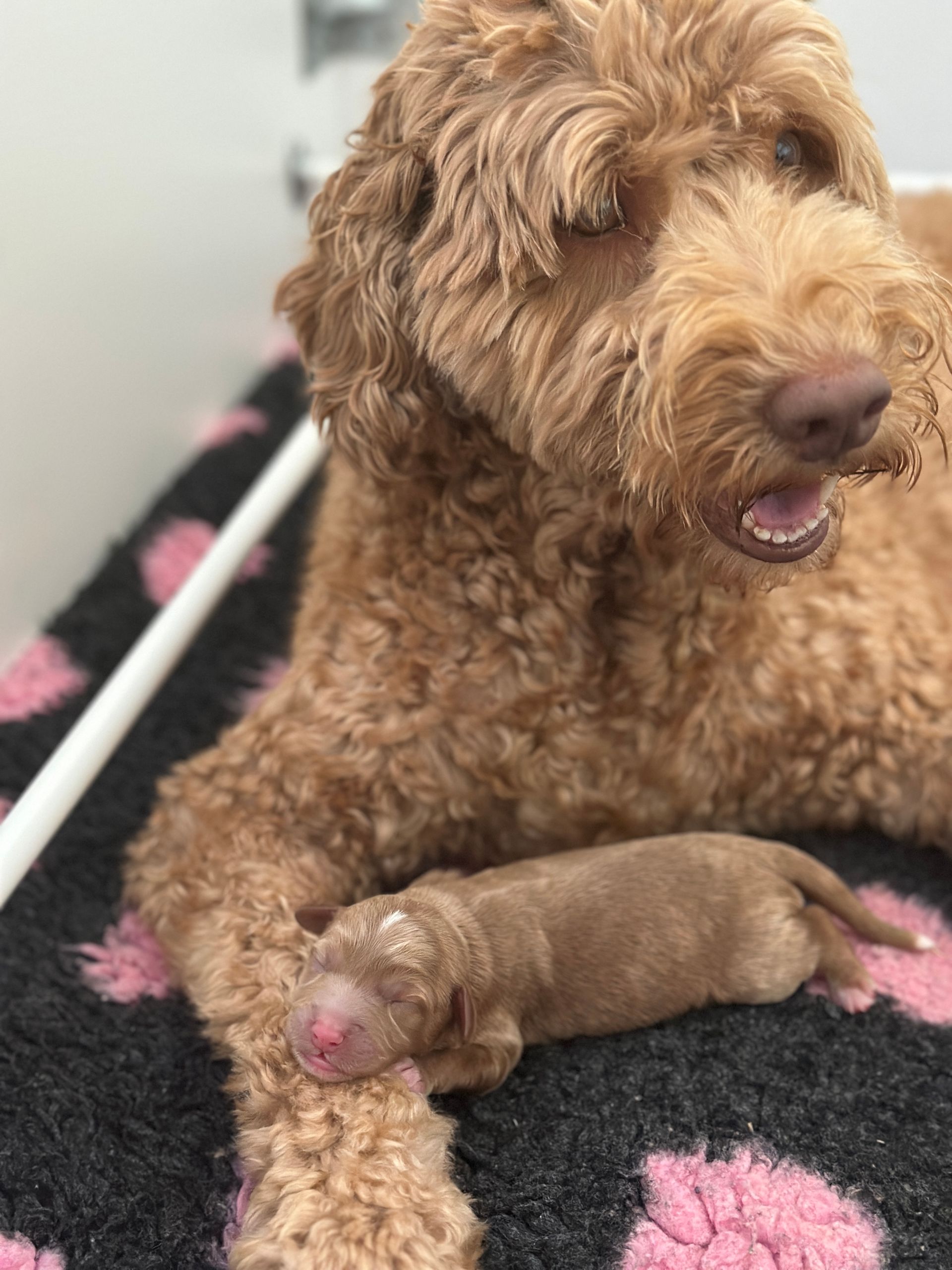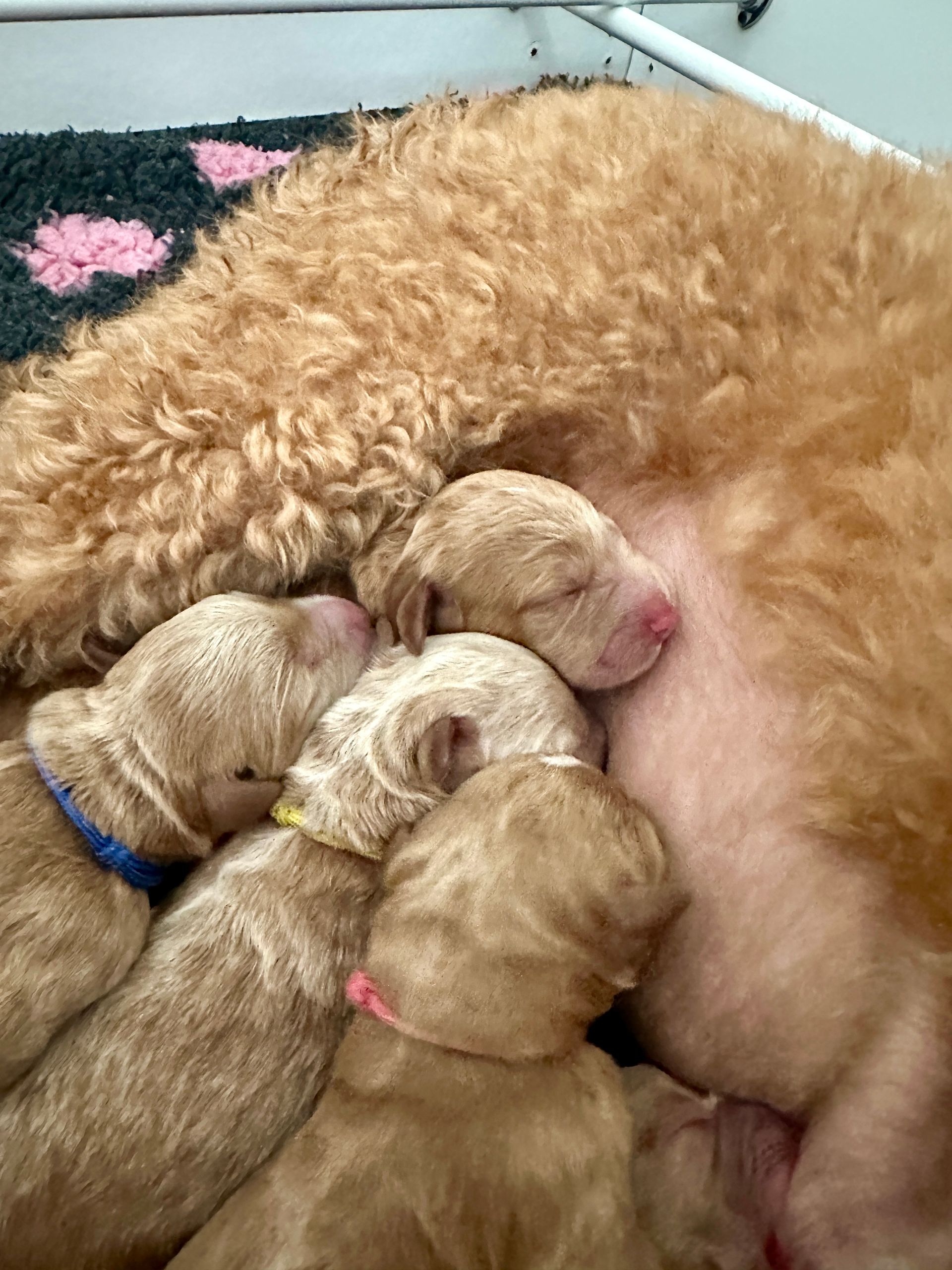 Mummy and babies are doing very well. We have five males and two females in caramel colourings We anticipate pups to be around 14 -16kg kg as adults dogs. Pups will be ready for their new homes around the 11th and 12th of October. All pups from this litter have loving homes to go to.