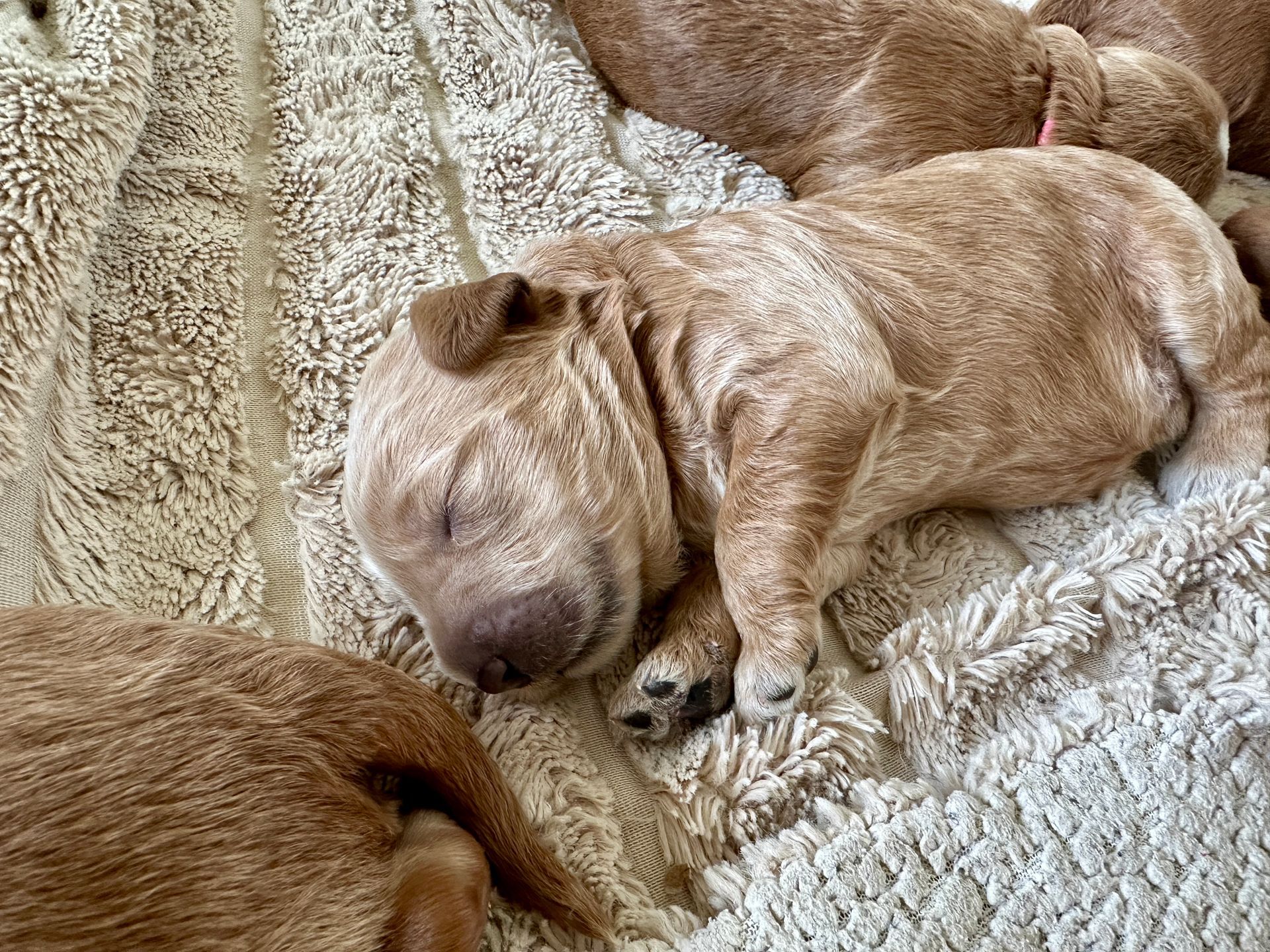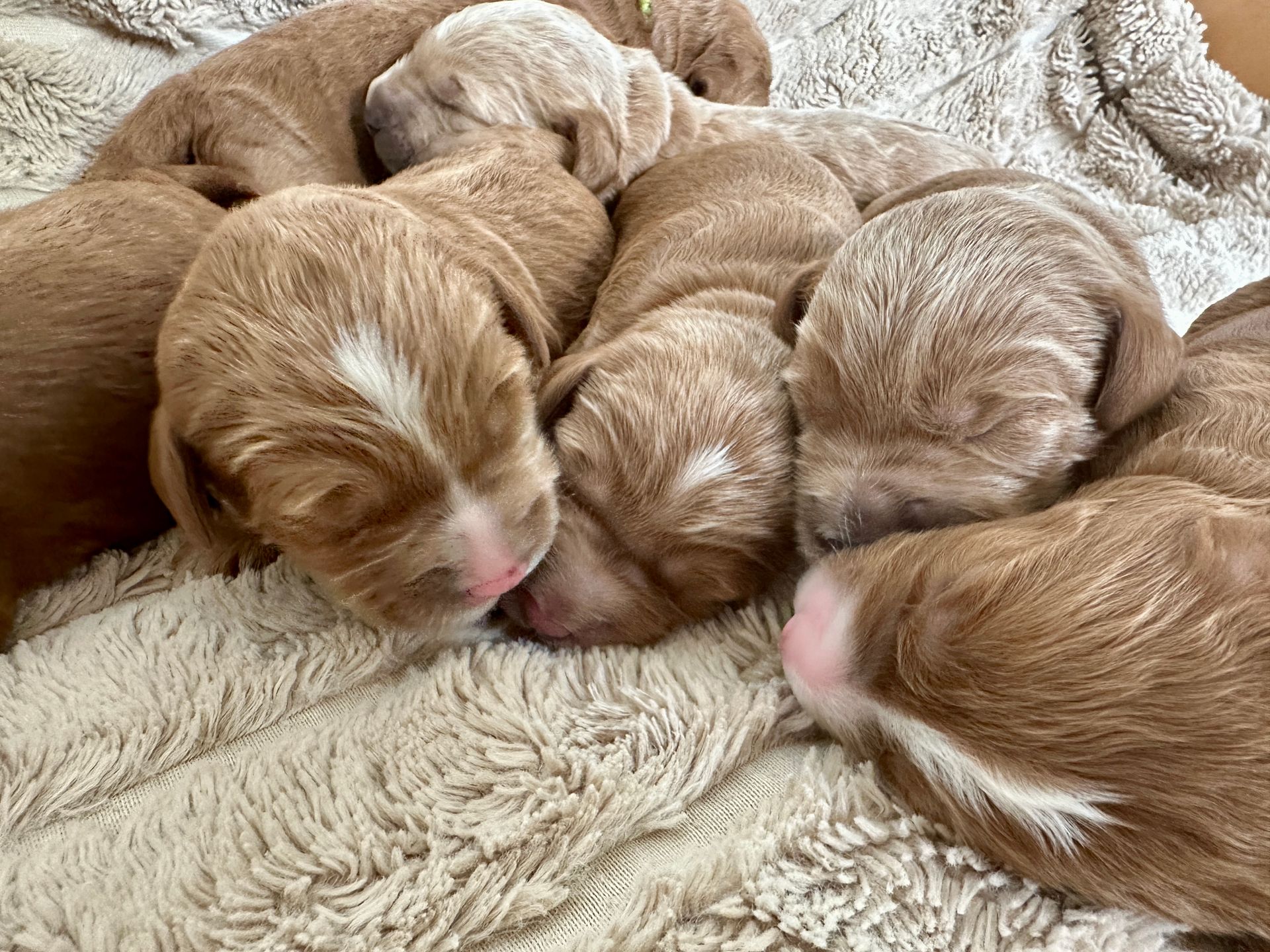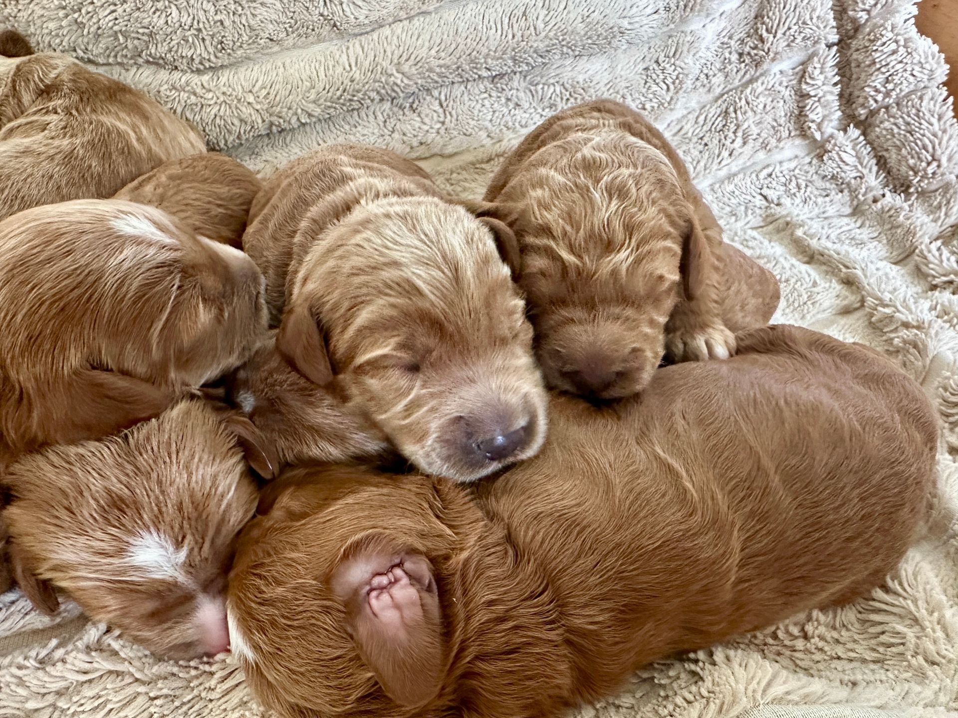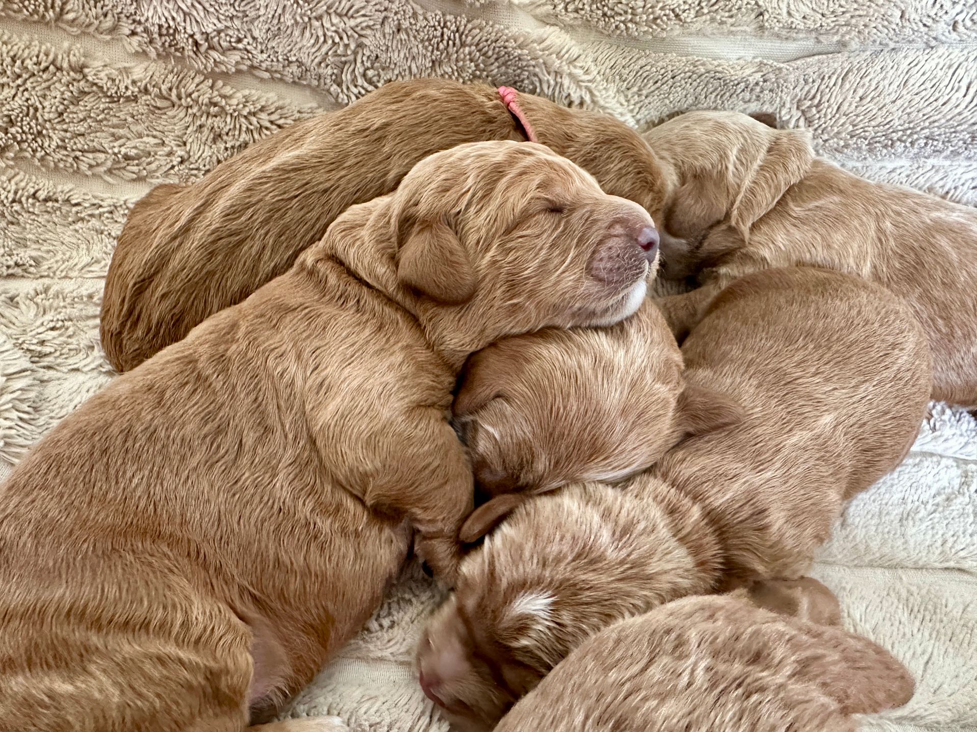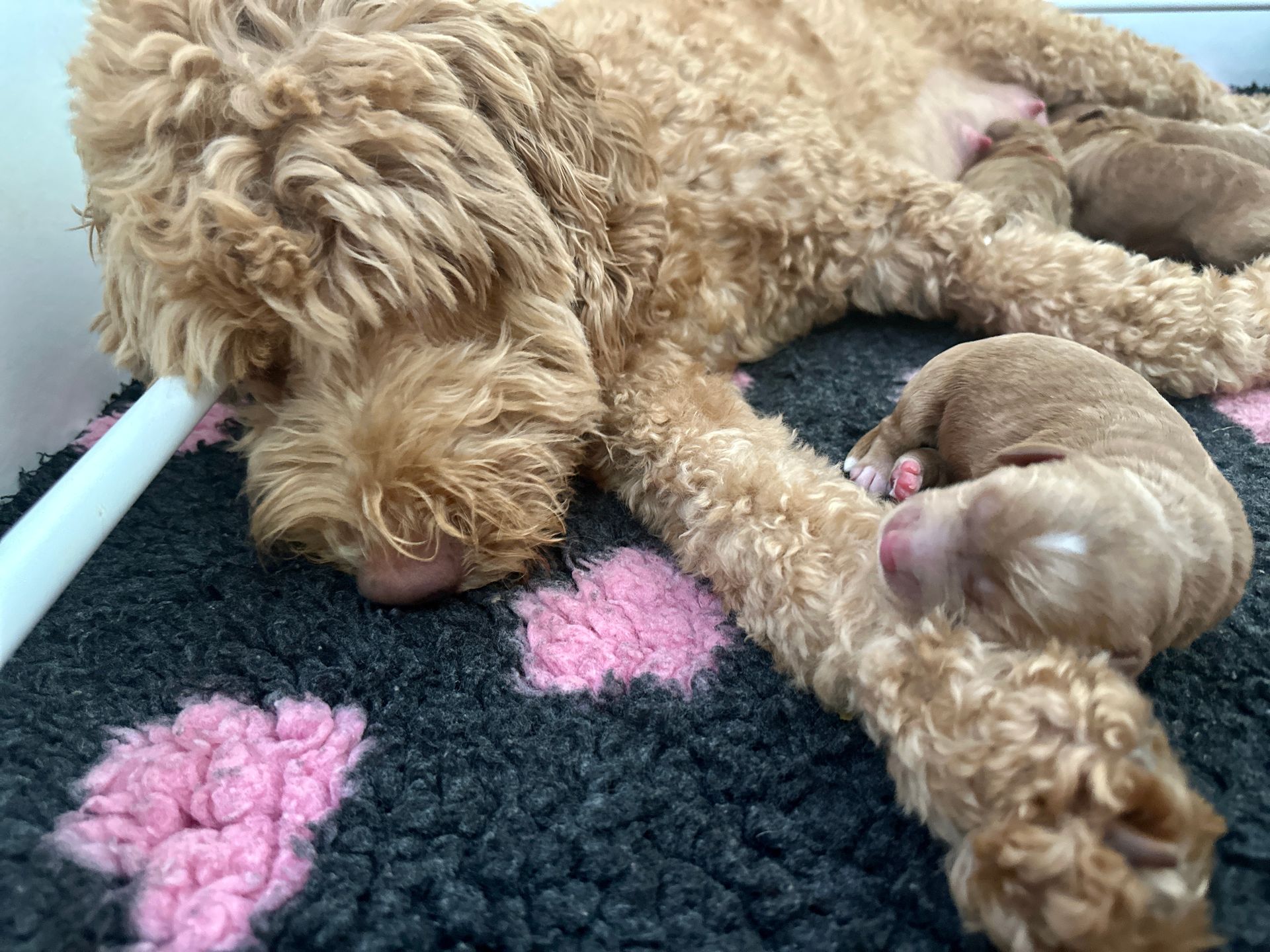 Mummy and babies are doing very well. We have five males and two females in caramel colourings We anticipate pups to be around 14 -16kg kg as adults dogs. Pups will be ready for their new homes around the 11th and 12th of October. All pups from this litter have loving homes to go to.