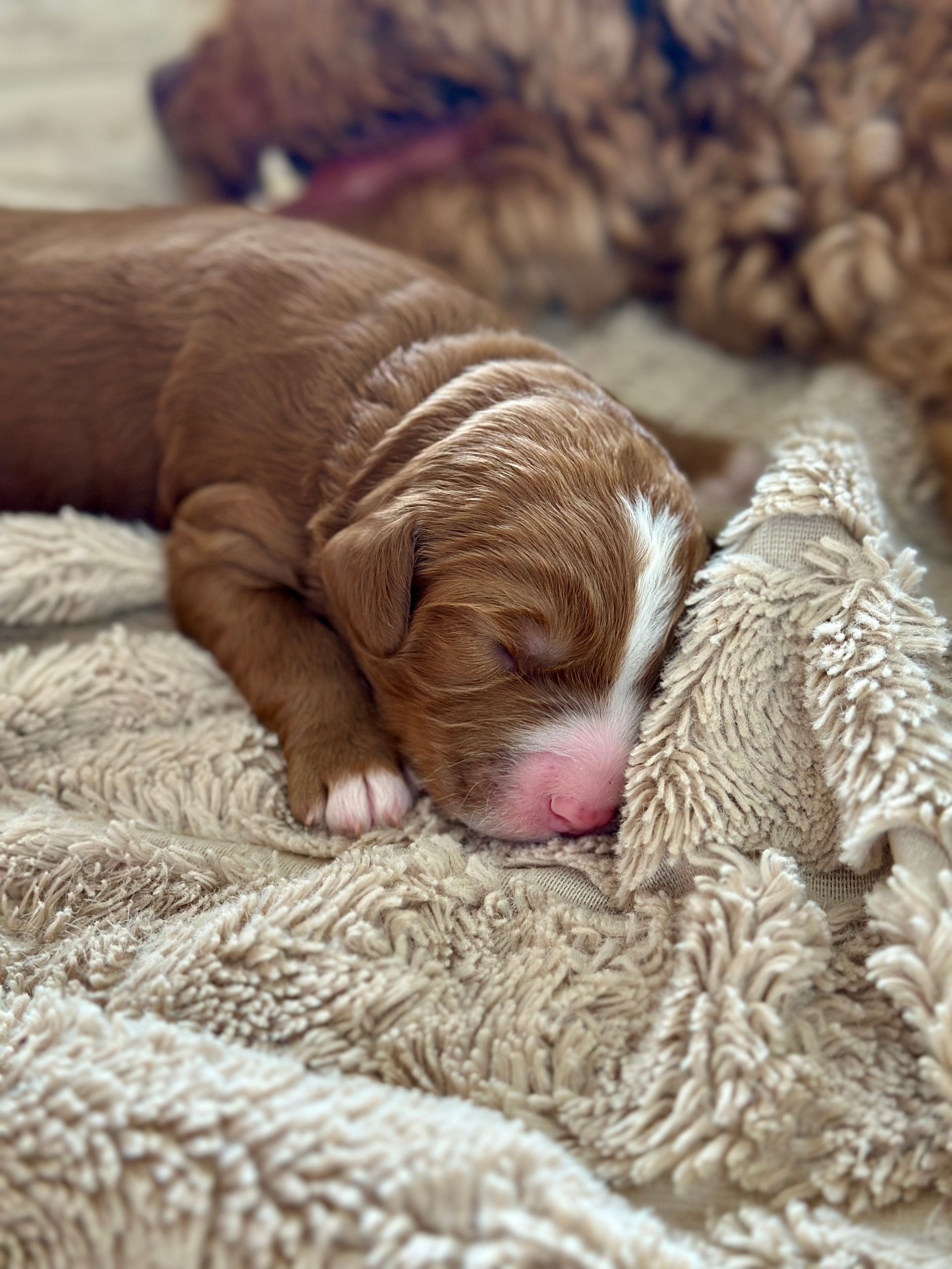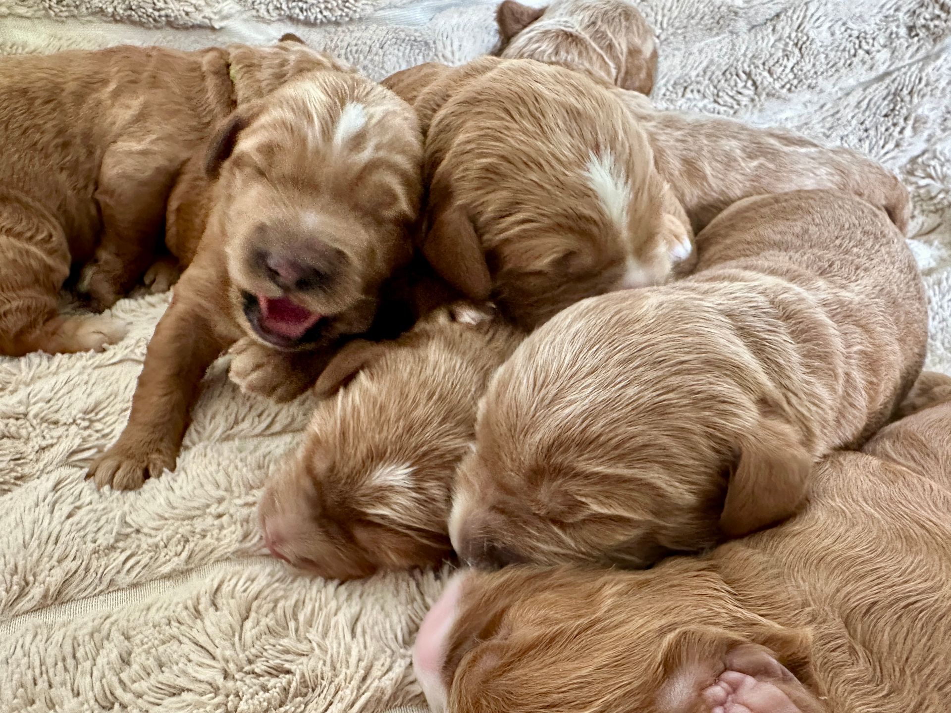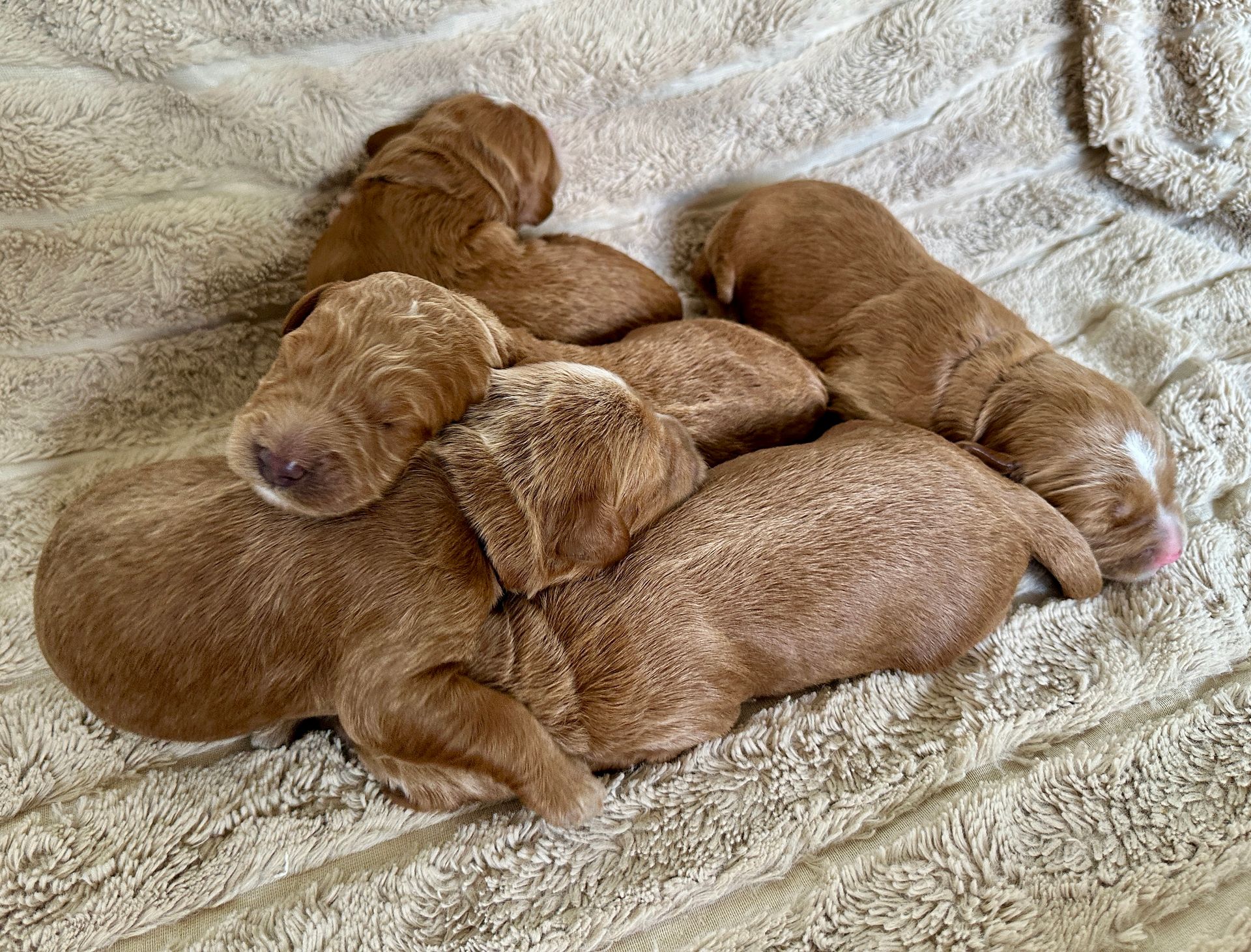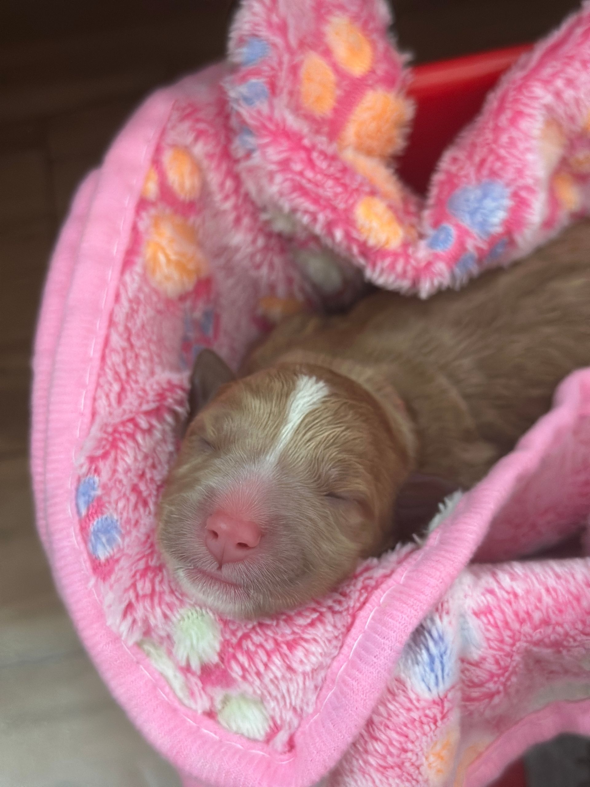 Mummy and babies are doing very well. We have five males and two females in caramel colourings We anticipate pups to be around 14 -16kg kg as adults dogs. Pups will be ready for their new homes around the 11th and 12th of October. All pups from this litter have loving homes to go to.