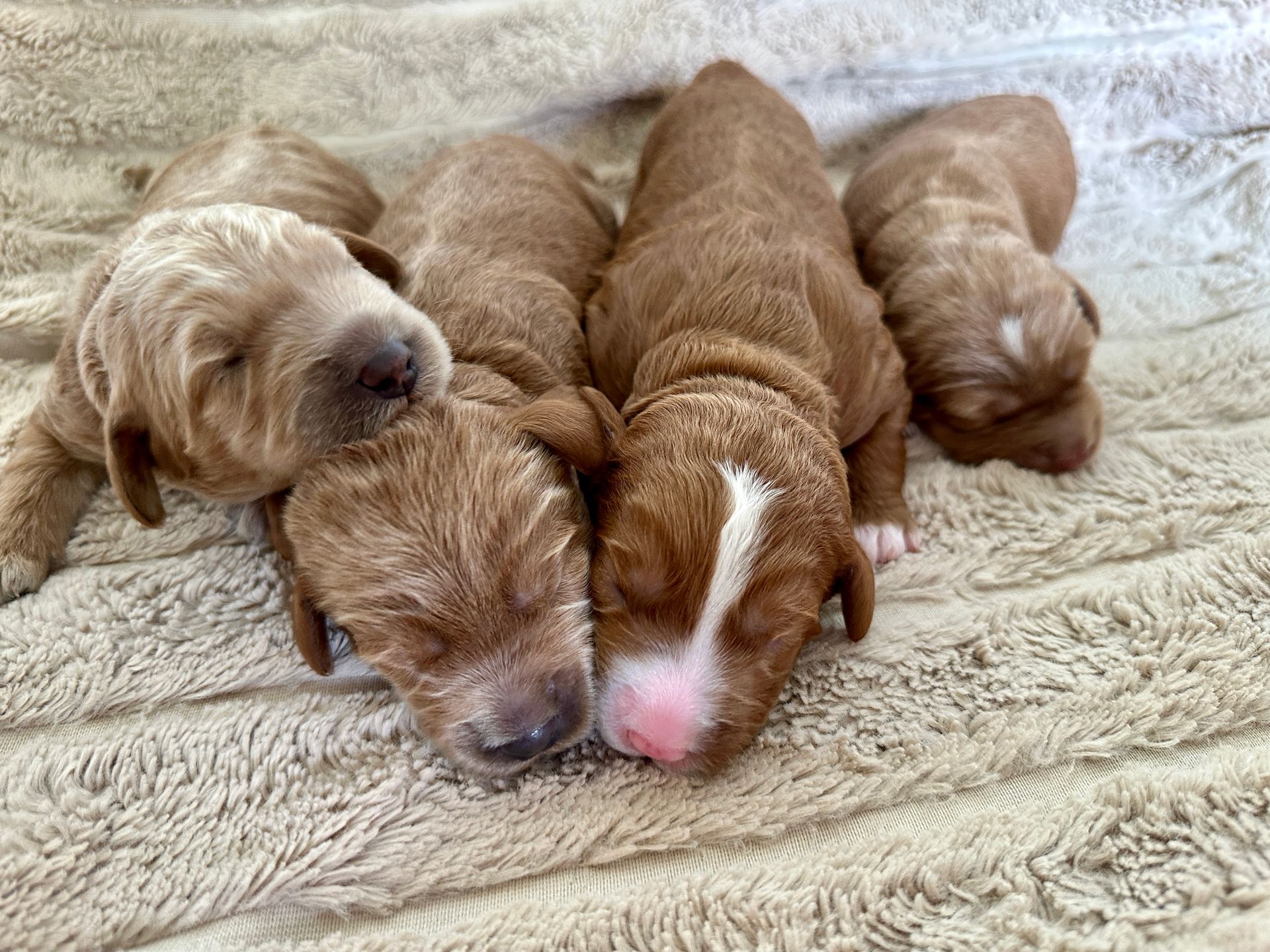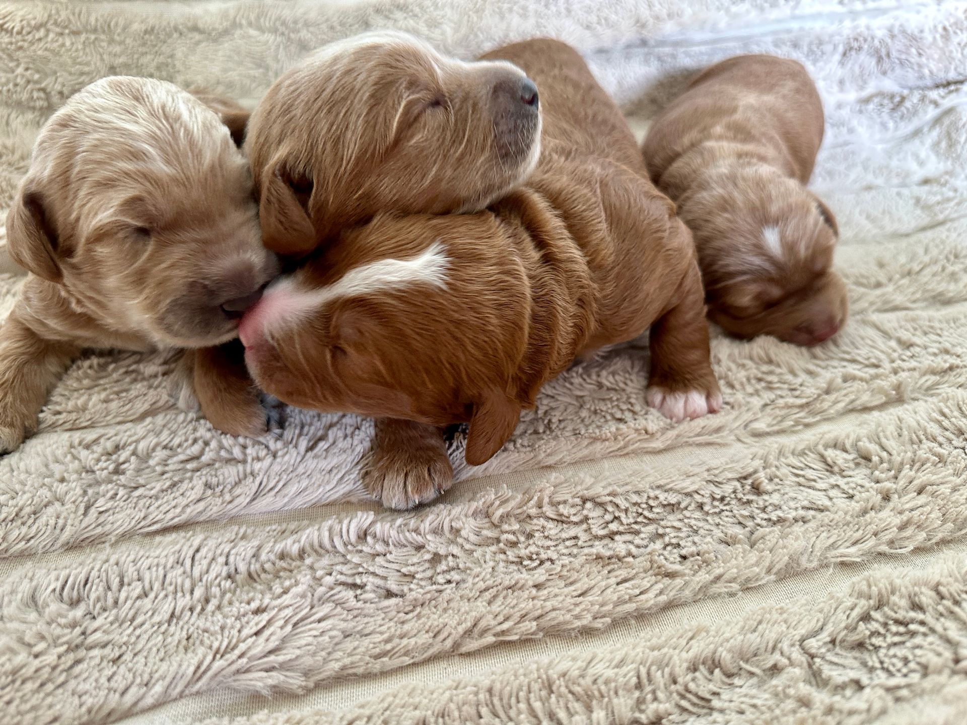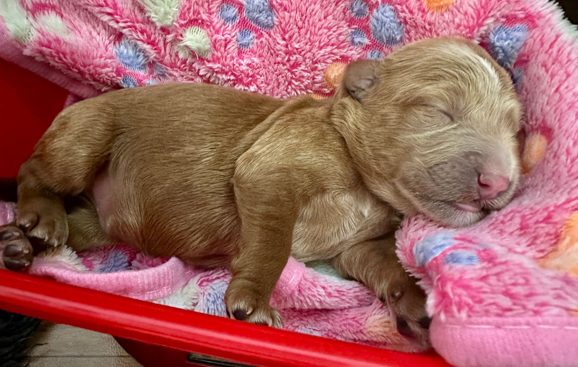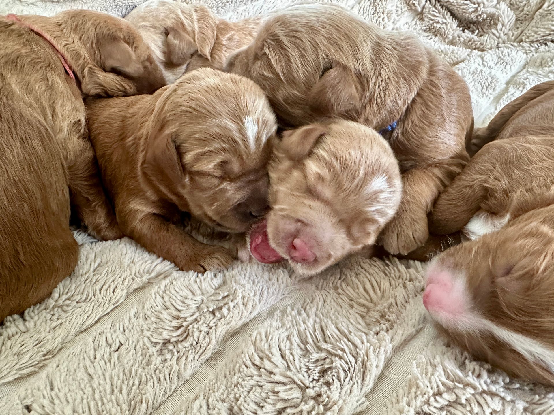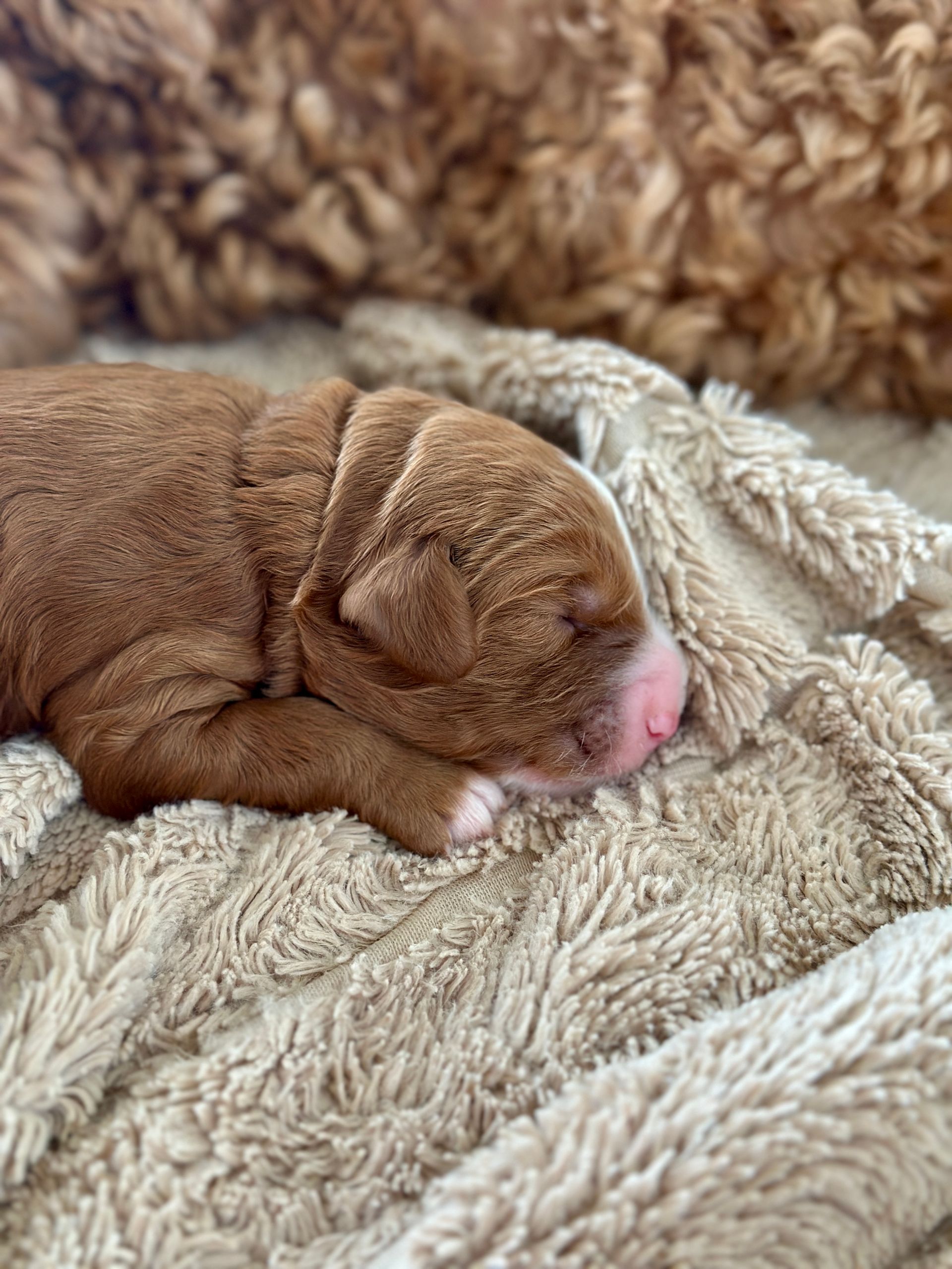 Mummy and babies are doing very well. We have five males and two females in caramel colourings We anticipate pups to be around 14 -16kg kg as adults dogs. Pups will be ready for their new homes around the 11th and 12th of October. All pups from this litter have loving homes to go to.